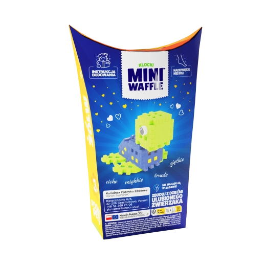 Scopri il divertente set di costruzioni Mini Waffle Pocket Pets – tartaruga del marchio Marioinex. Un set compatto con 25 pezzi colorati che stimola creatività, motricità fine e pensiero logico. I pezzi sono flessibili, resistenti e sicuri, si uniscono e si separano facilmente e si abbinano perfettamente agli altri set Mini Waffle per possibilità di costruzione illimitate.