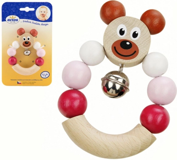 Il grazioso sonaglio in legno con orsetto di colore rosa farà felice ogni bebè. La campanellina integrata tintinna dolcemente, il sonaglio è leggerissimo e grazie alle dimensioni compatte 7 × 9 cm si tiene perfettamente nelle piccole manine. Il prodotto soddisfa i rigorosi requisiti UE per la sicurezza dei giocattoli e vanta il certificato Giocattoli sicuri.