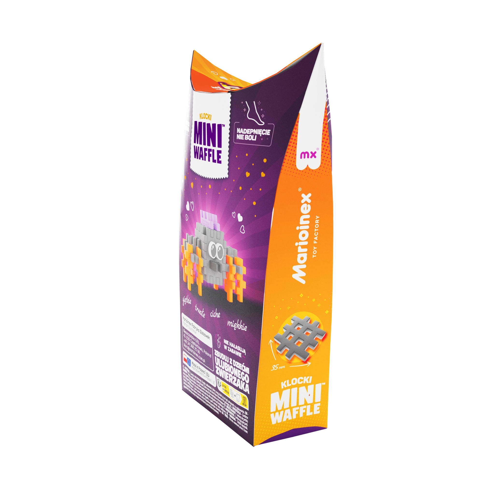 Scopri il mondo creativo del kit di costruzione Mini Waffle Pocket Pets – ragno del marchio Marioinex. Un set compatto con 25 pezzi colorati permette ai bambini di costruire una simpatica figurina di ragno e sviluppare motricità fine, pensiero logico e fantasia. I pezzi sono elastici, resistenti e sicuri, si uniscono e si separano facilmente e si abbinano perfettamente agli altri set Mini Waffle.