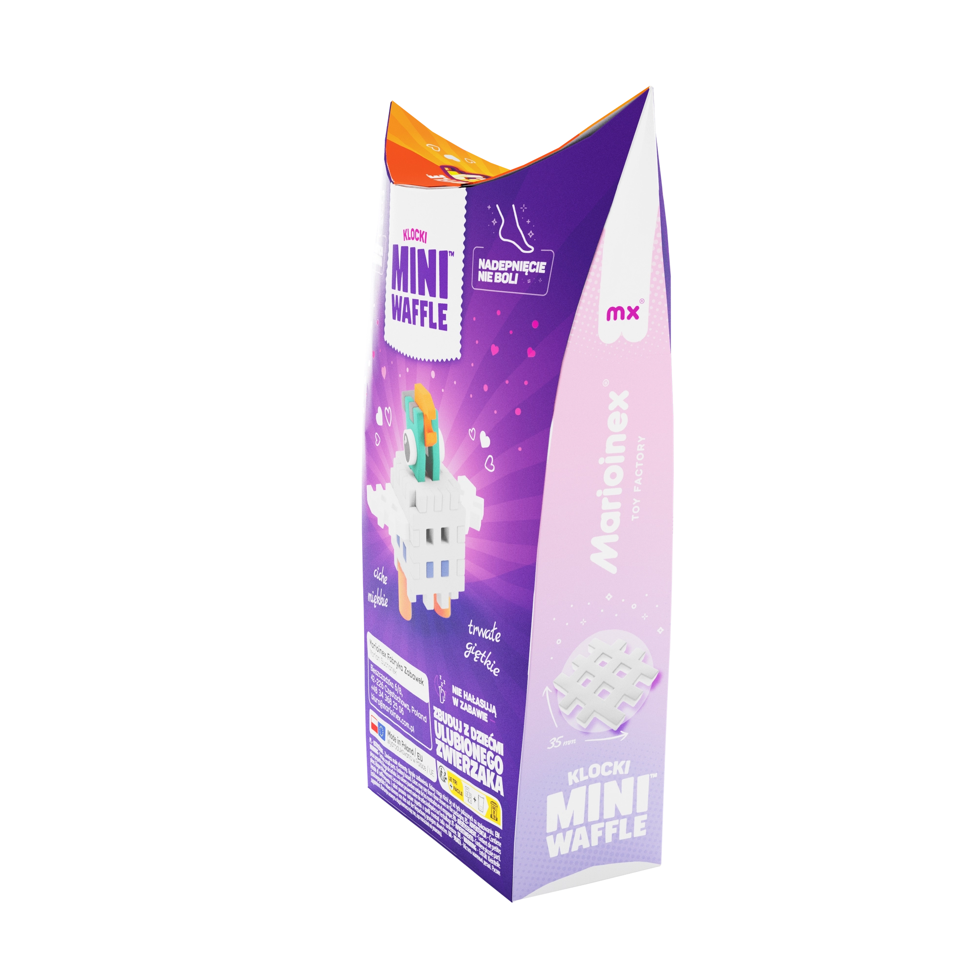 Scopri il mondo creativo delle costruzioni Mini Waffle Pocket Pets del marchio Marioinex. Un set compatto con 16 pezzi colorati permette ai bambini di assemblare una tenera figurina di piccione, sviluppando fantasia, motricità fine e pensiero logico. I pezzi sono flessibili, resistenti e sicuri, si uniscono e si separano con facilità e si abbinano perfettamente ad altri set Mini Waffle per costruzioni infinite in 2D e 3D.