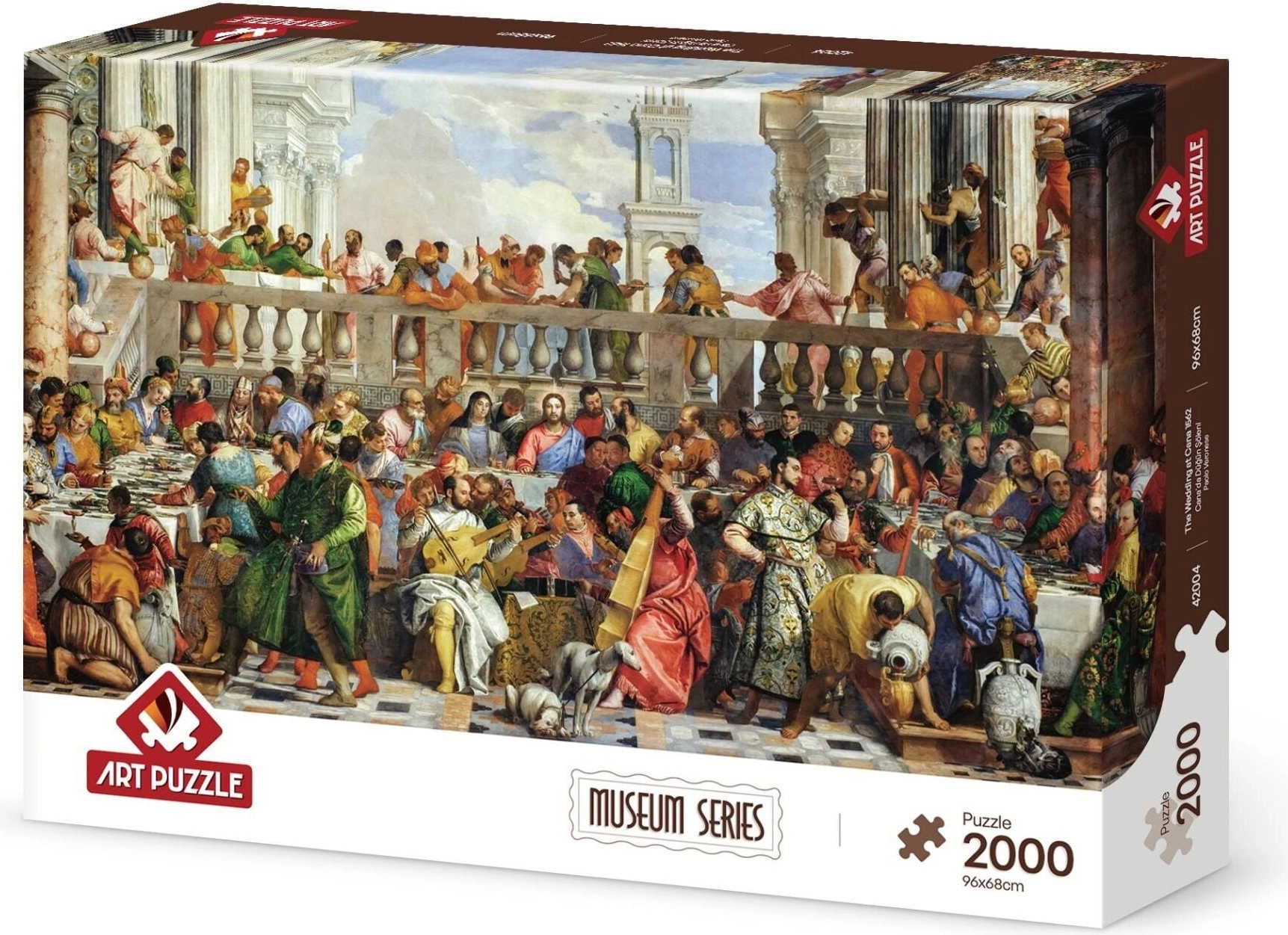 Goditi ore di relax con il puzzle di alta qualità Art Puzzle – Le Nozze di Cana da 2000 pezzi. Il grande formato una volta completato, circa 96 × 68 cm, risalta sia sulla parete che sul tappetino per puzzle. Inoltre, il produttore offre il servizio di invio del pezzo mancante previa presentazione del numero di lotto e disponibilità del soggetto.