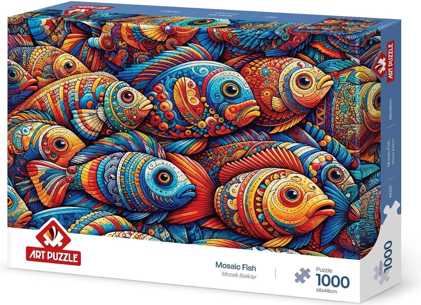 Scopri il piacere del puzzle con un motivo ricco di colori e dettagli. Il puzzle ART PUZZLE Pesci a mosaico è un’ottima scelta per una serata tranquilla o come regalo per gli amanti dei puzzle. Grazie alla stampa di qualità e all’incastro preciso, i pezzi si uniscono senza sforzo creando un’immagine suggestiva di circa 68 × 48 cm.