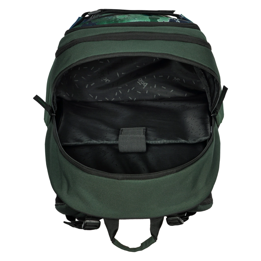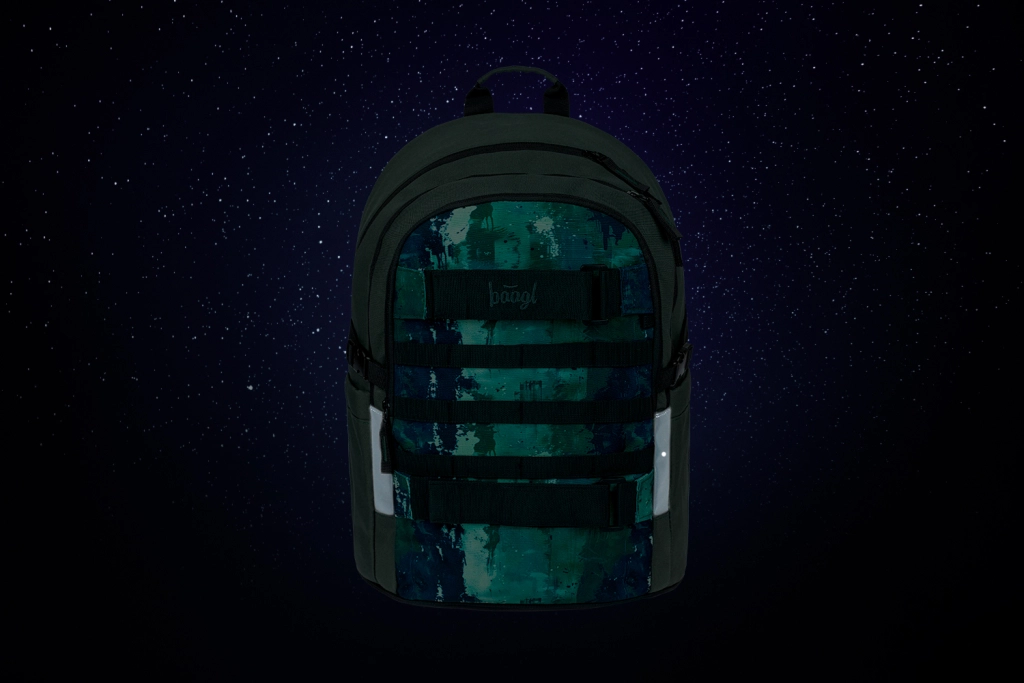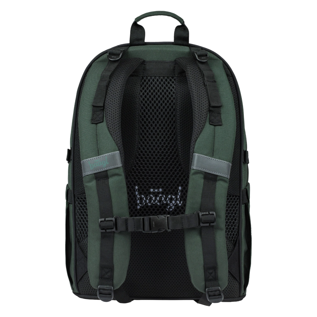 Completa dotazione scolastica nel design uniforme Forest per studenti più grandi. Il set include zaino scolastico resistente con fissaggio per skateboard, capiente astuccio, borsa sportiva pieghevole, pratico marsupio e custodia protettiva per notebook. Materiali con certificazione GRS, trattamento idrorepellente, sicuri elementi riflettenti e affidabili cerniere YKK garantiscono comfort, ordine e lunga durata.