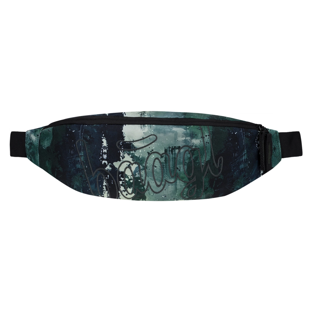 - tasca principale con zip + tasca frontale con zip, cintura regolabile
