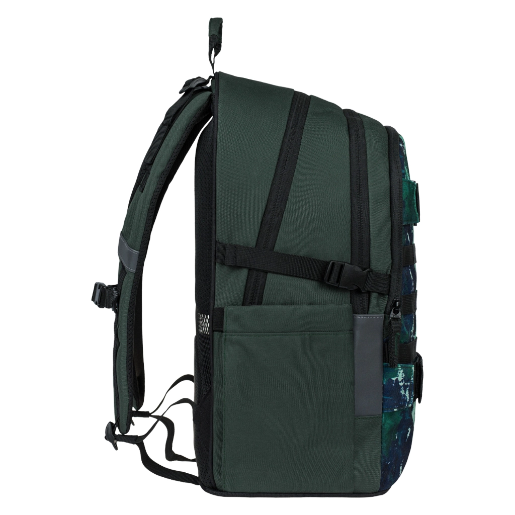 Il set scolastico Baagl Skate Forest è progettato per l’uso quotidiano a scuola, in allenamento e in viaggio. Lo zaino con schienale anatomico e cinghie di compressione offre comfort anche a pieno carico; tre scomparti con organizer e tasca imbottita per notebook da 15" mantengono tutto ordinato. Il tutto è completato da un astuccio con doppia patta, borsa sportiva pieghevole, marsupio per piccoli oggetti e custodia imbottita per i dispositivi.
