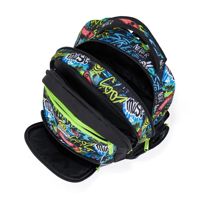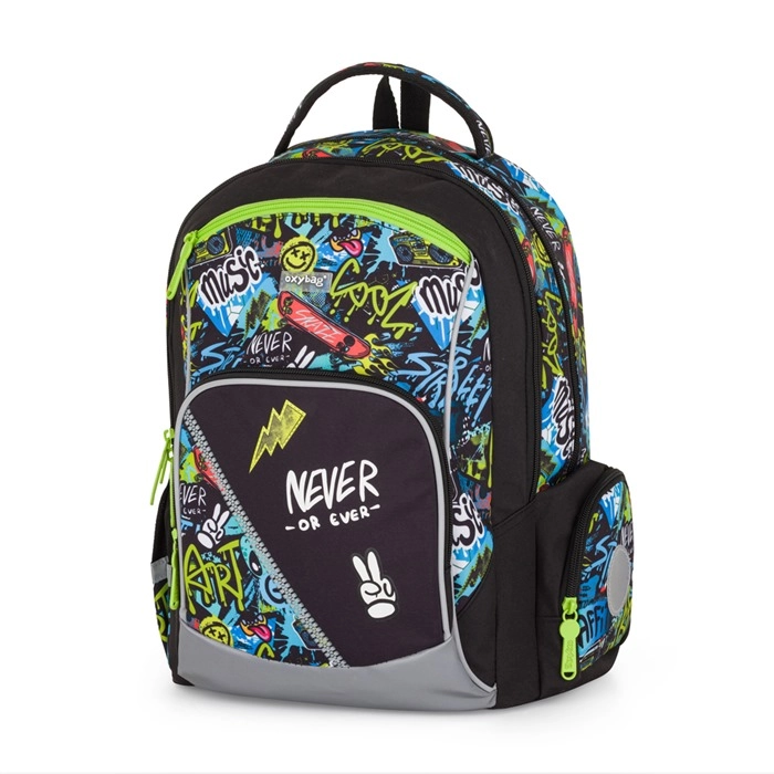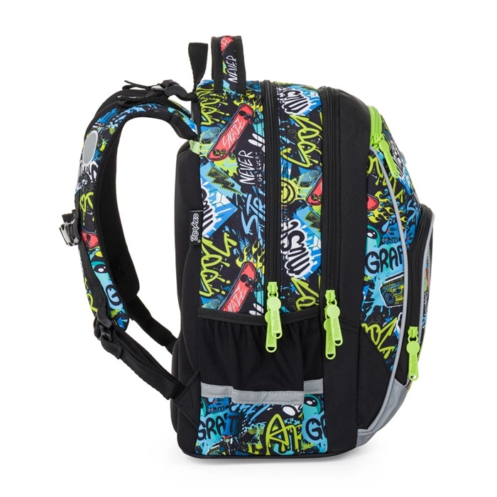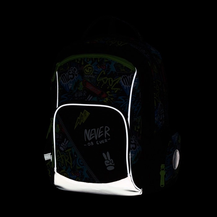 Il set scolastico Oxy Go Funny Boy è progettato per un trasporto comodo e salutare del materiale scolastico dei bambini dalla 1ª alla 3ª classe (altezza consigliata da circa 125 cm). Lo zaino si distingue per la struttura leggera e resistente, lo schienale anatomico, gli spallacci regolabili e pratici gancetti per fissare le estremità più lunghe delle cinghie. Grazie ai numerosi scomparti e tasche, il materiale scolastico rimane ben organizzato, mentre il fondo rigido impermeabile protegge il contenuto da umidità e sporco.