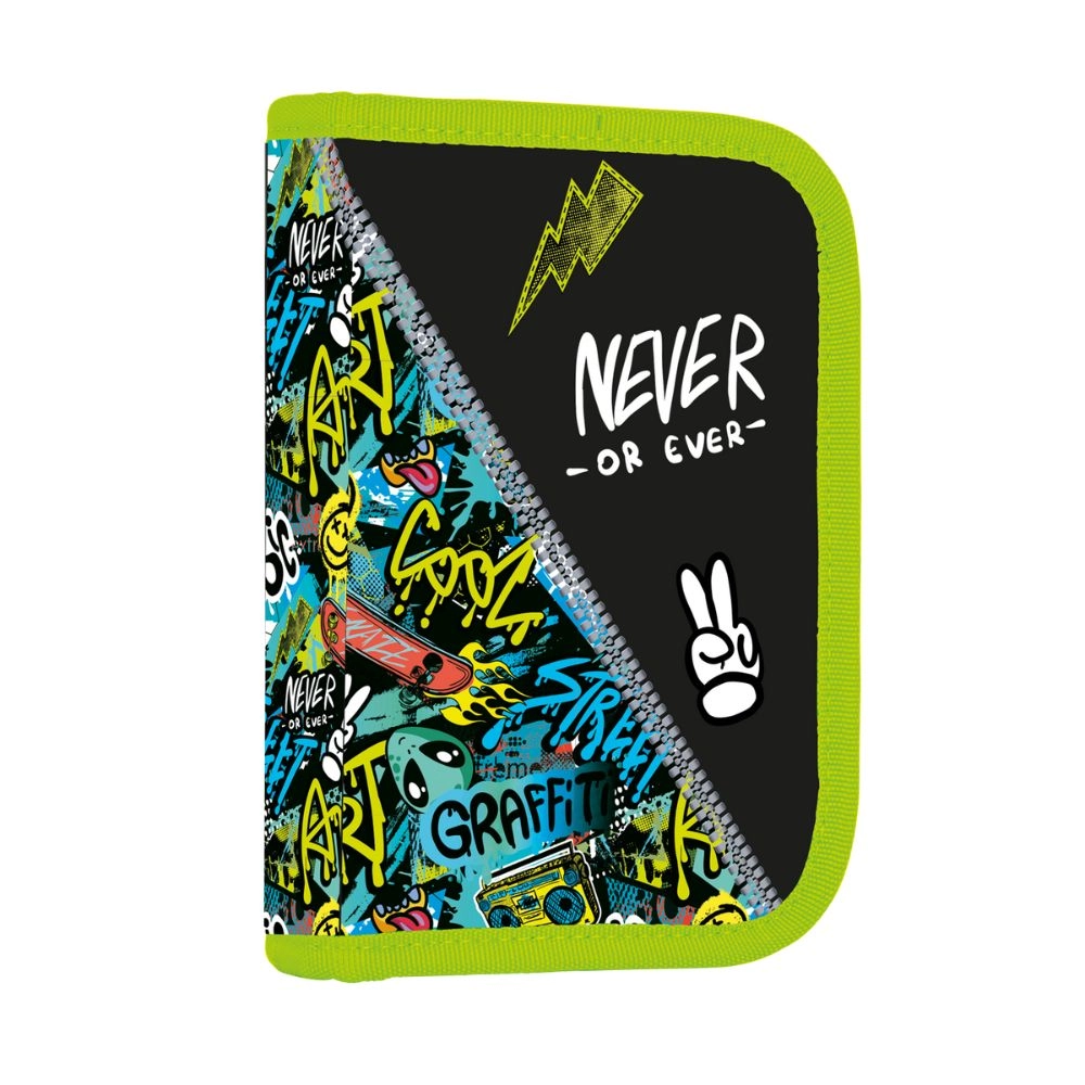 Il set comprende anche una capiente sacca con chiusura a cordino, ideale per attrezzatura sportiva, scarpe di ricambio o attività del tempo libero. L’astuccio a un piano con due alette ha passanti elastici per la cancelleria e una pellicola trasparente per l’orario delle lezioni, così i bambini hanno tutto a portata di mano e ben ordinato.