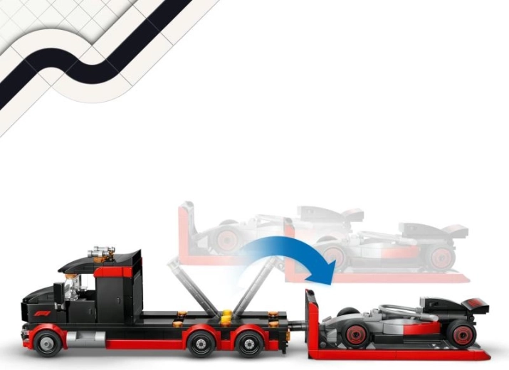 Trasporta il monoposto sul luogo della gara e scaricalo facilmente in pista grazie al sollevatore. Cabina, vani portaoggetti e vano motore per un gioco realistico.