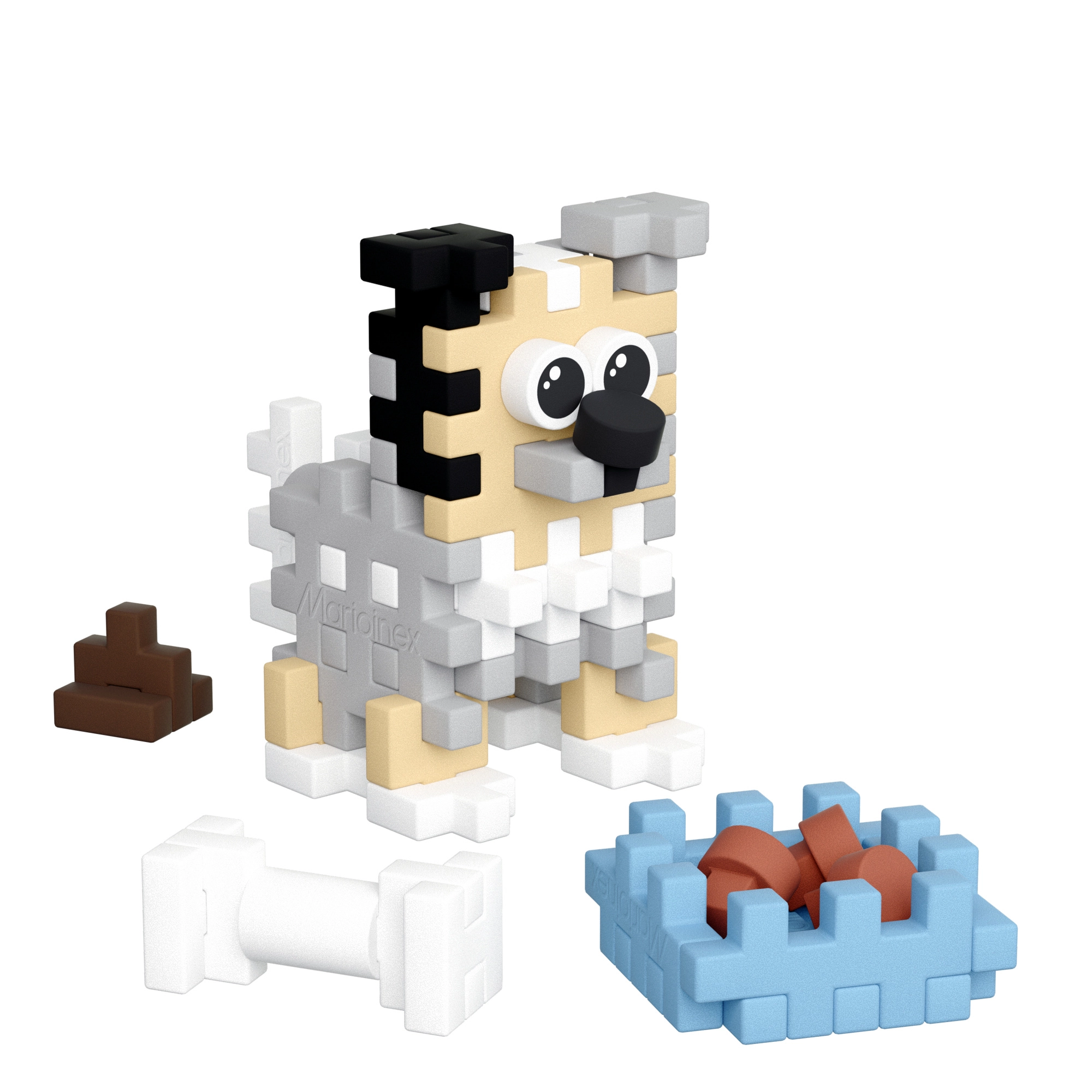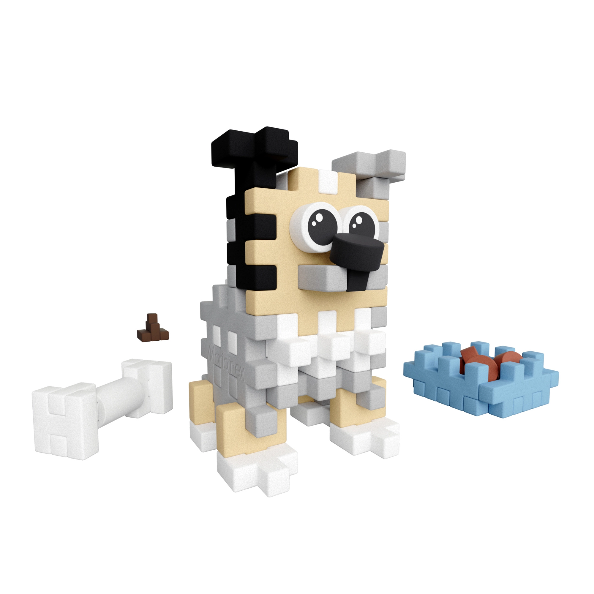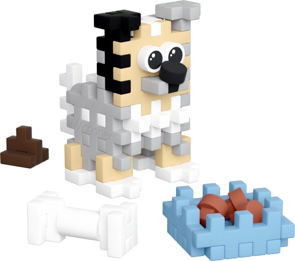 Nella confezione trovi: 49 pezzi colorati, accessori (ciotola con crocchette, osso, pupù) e istruzioni illustrate dettagliate. Le dimensioni compatte la rendono un giocattolo ideale a casa e in viaggio.
