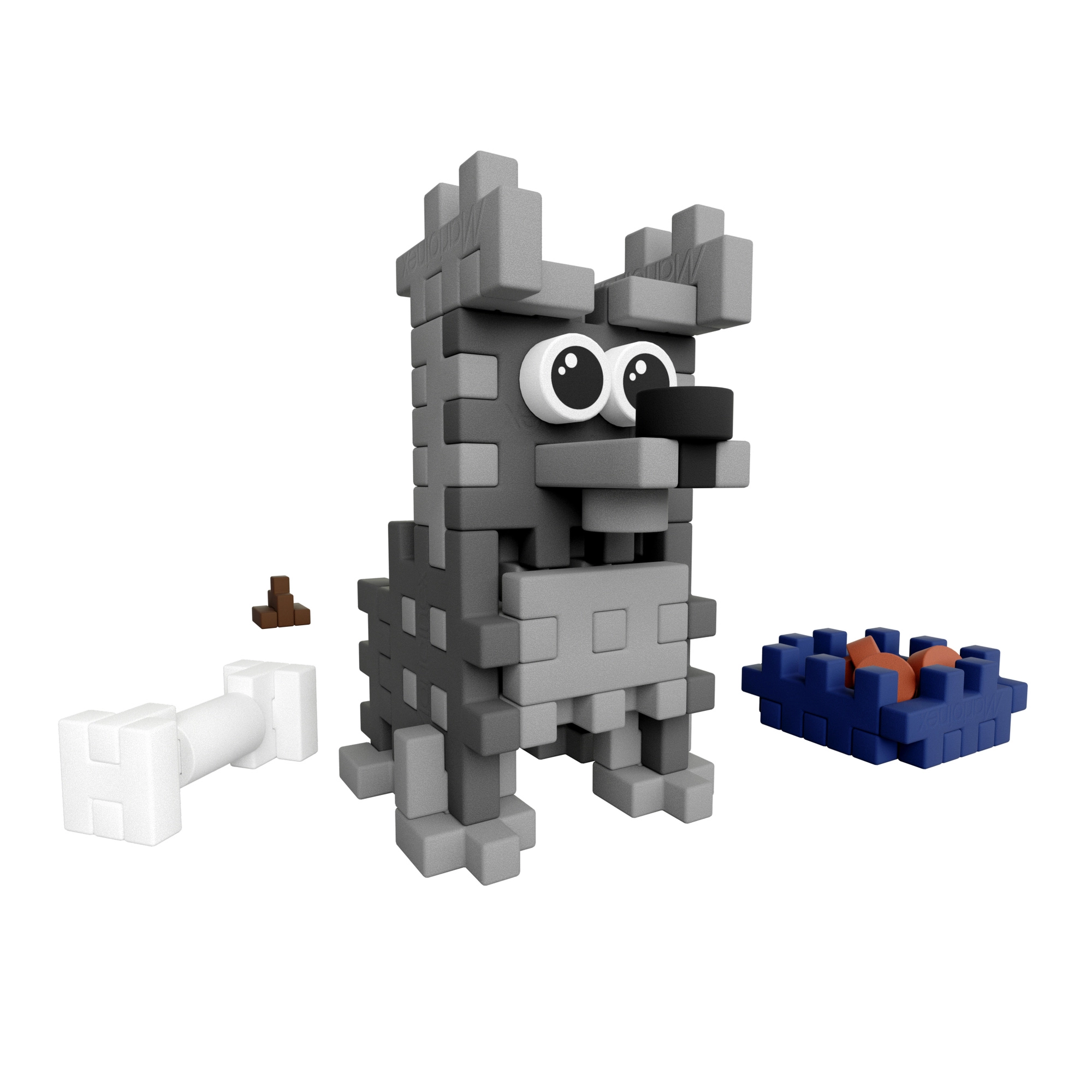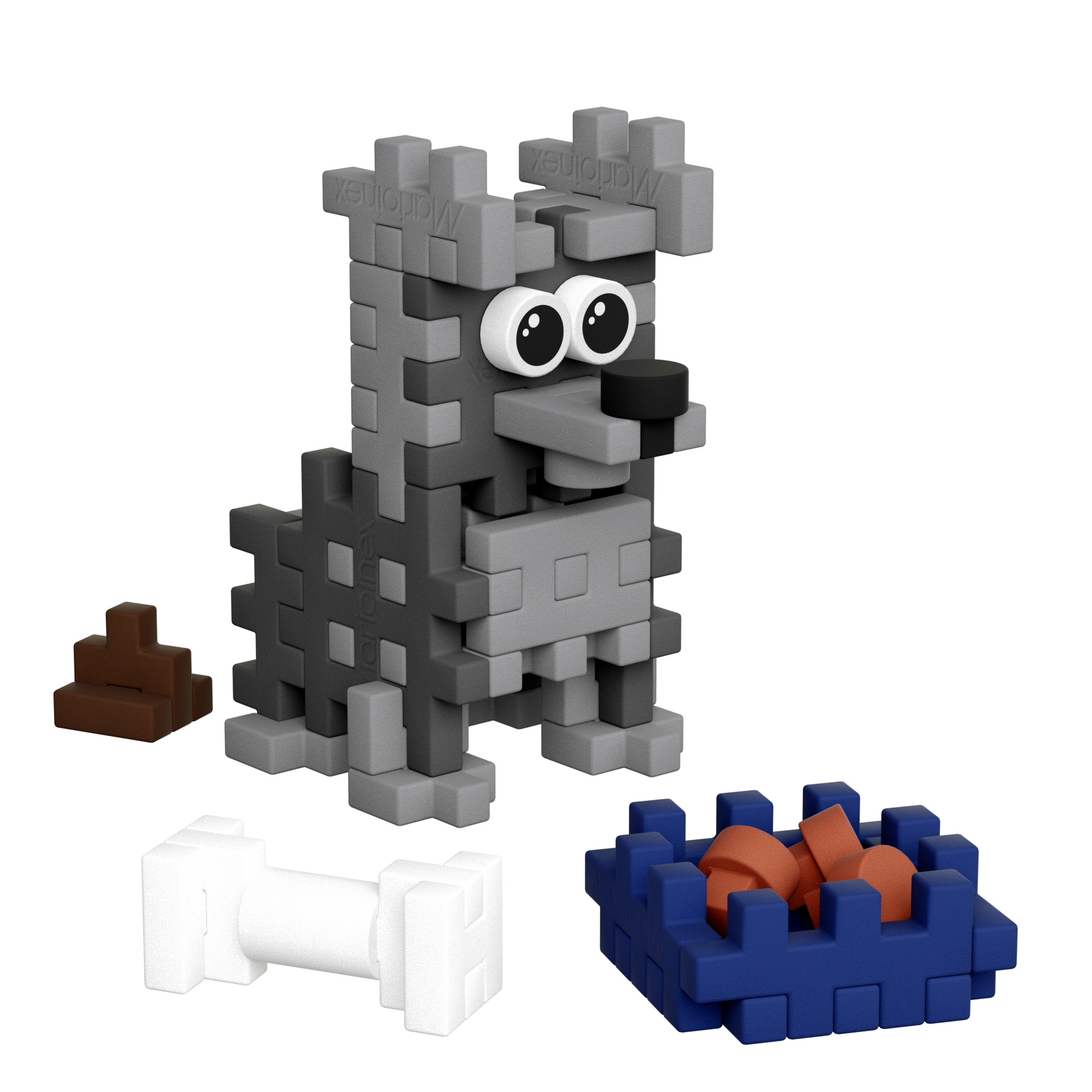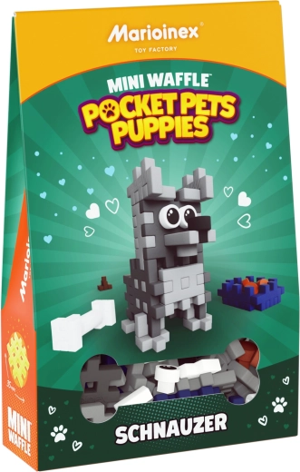 Costruzioni creative Marioinex Mini Waffle Pocket Pets – cucciolo di schnauzer offre 49 pezzi flessibili per costruire in 2D e 3D. I bambini possono assemblare il cagnolino con accessori (ciotola con cibo, osso e cacchetta), allenando la motricità fine e sviluppando la fantasia. I pezzi si uniscono e separano facilmente, sono resistenti e sicuri e compatibili con altri set Mini Waffle.