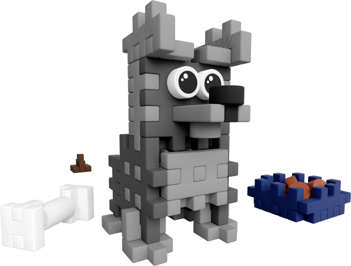 Scopri il mondo tascabile delle costruzioni Mini Waffle del marchio Marioinex. Il set compatto con 49 pezzi colorati permette ai bambini di costruire un tenero cagnolino – schnauzer – con accessori per il gioco di ruolo. Grazie ai pezzi morbidi ma robusti, la costruzione è piacevole, sicura e divertente.
