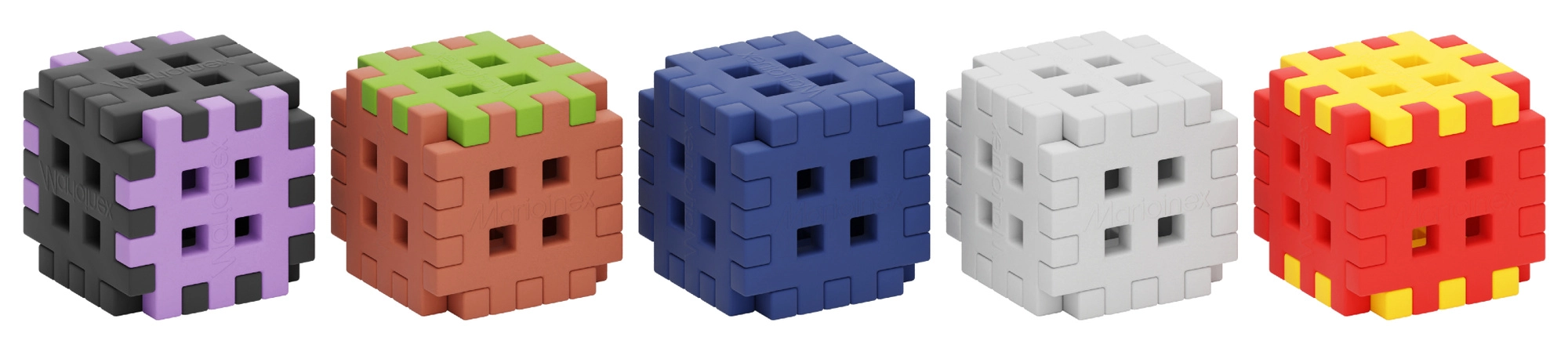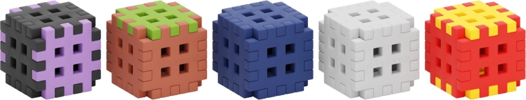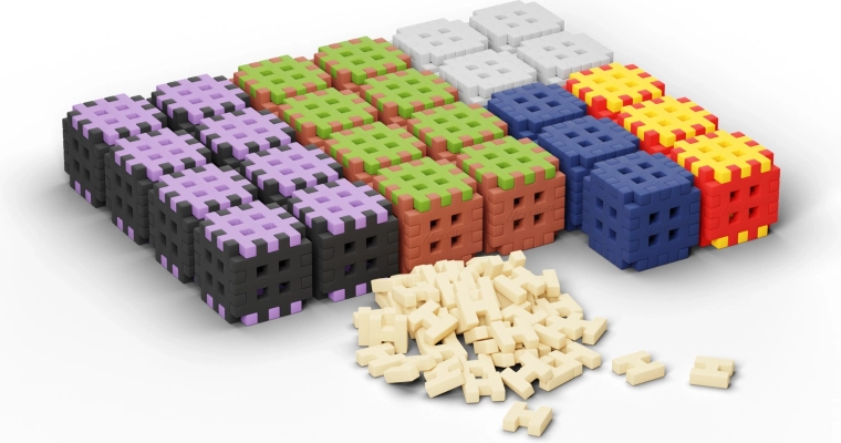 Il design a waffle con una rete di fori consente connessioni solide e multidirezionali e strutture 3D stabili, facilmente riconfigurabili.
