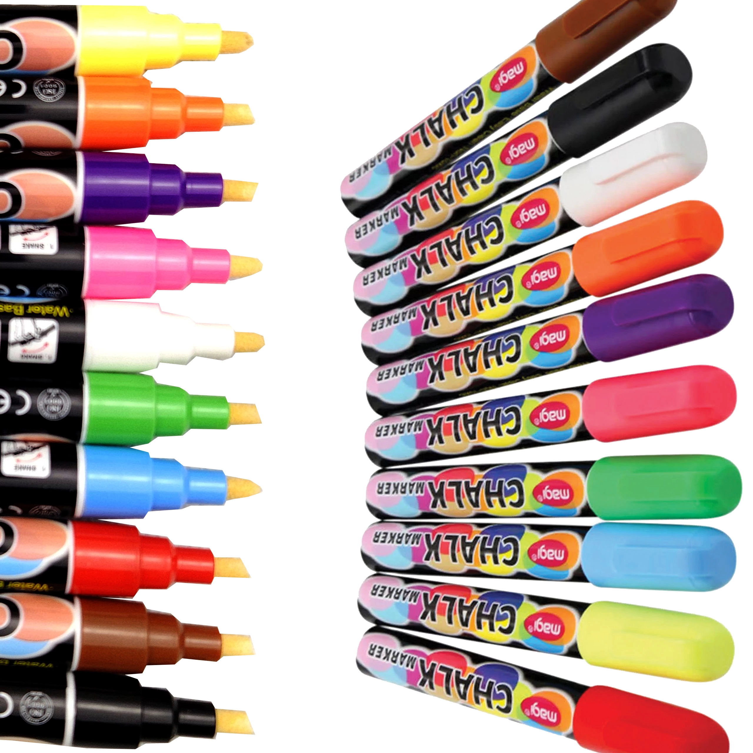 Scopri un'alternativa comoda al gesso tradizionale. L'inchiostro a gesso liquido aderisce perfettamente alle superfici lisce (lavagne, vetro, metallo, ceramica) e si cancella facilmente con un panno umido senza residui di polvere. I pennarelli sono adatti per lezioni, riunioni aziendali, lavagne menu, decorazioni nuziali e attività creative per bambini.