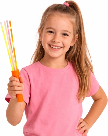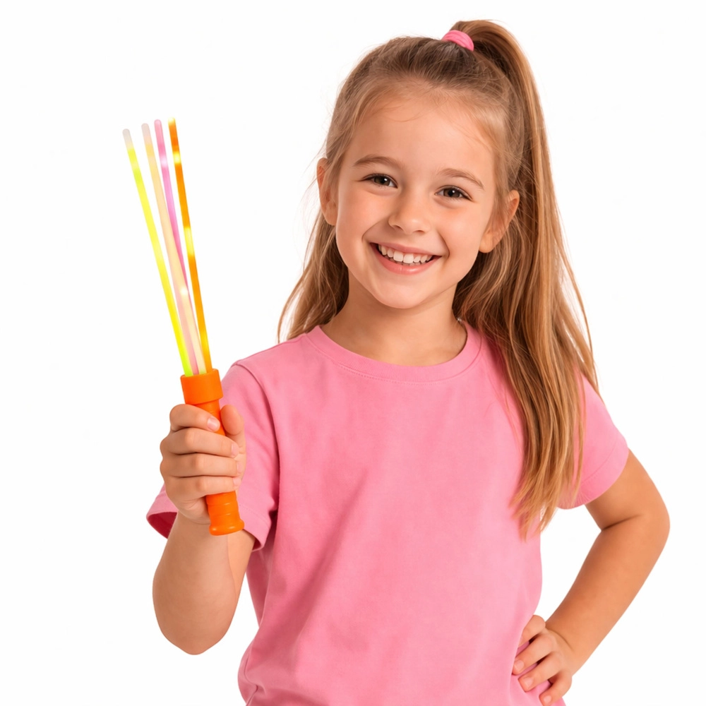 Crea un effetto luminoso appariscente con la bacchetta che può contenere contemporaneamente fino a 6 glow stick. L’attivazione avviene con una semplice piegatura, dopo la quale i bastoncini emettono una luce neon brillante visibile al buio, senza bisogno di batterie o ricarica.