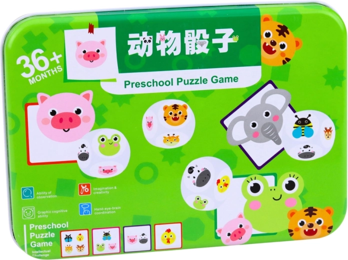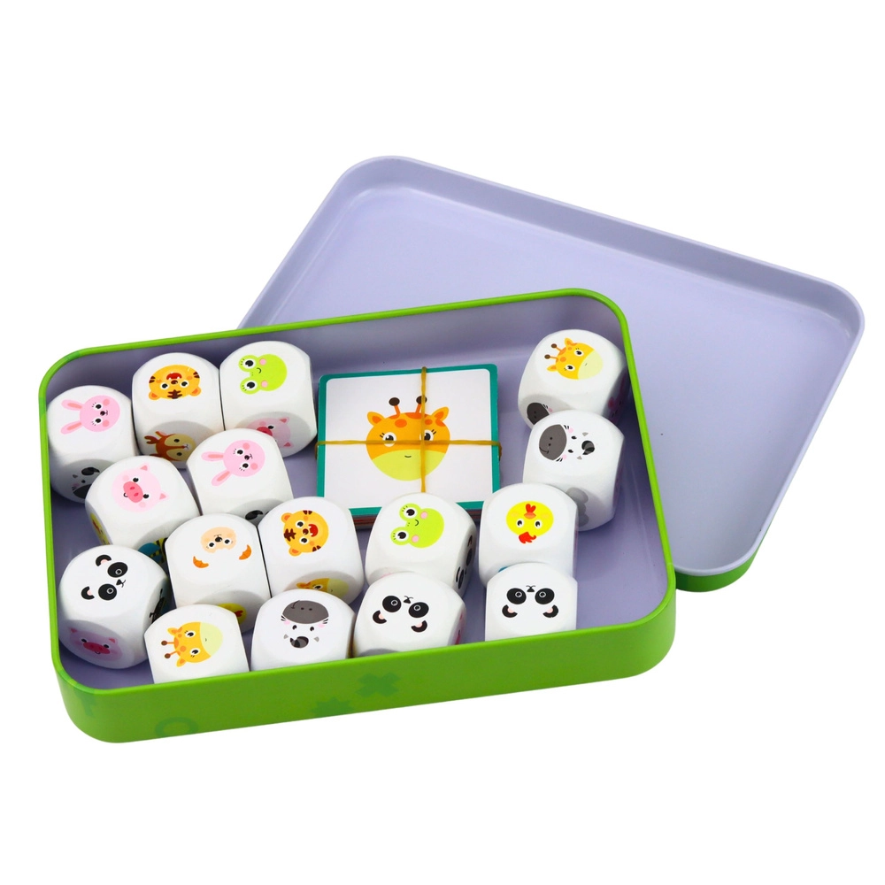 Questo gioco logico educativo insegna ai bambini a osservare, confrontare e risolvere compiti attraverso il gioco. Il bambino pesca una carta illustrata e, ruotando i cubetti, ricompone l’immagine corrispondente. Durante il gioco si potenziano concentrazione, pazienza e motricità fine.