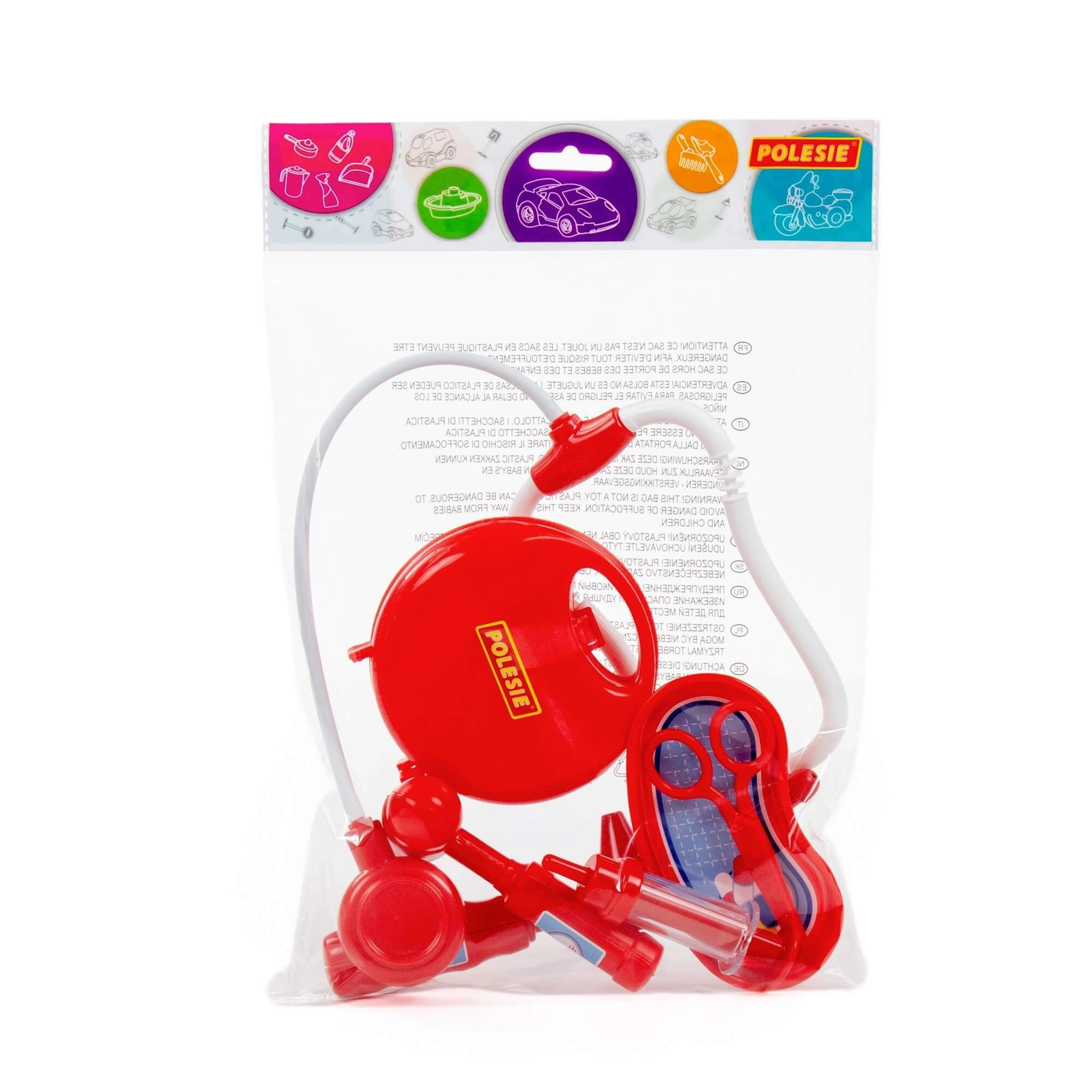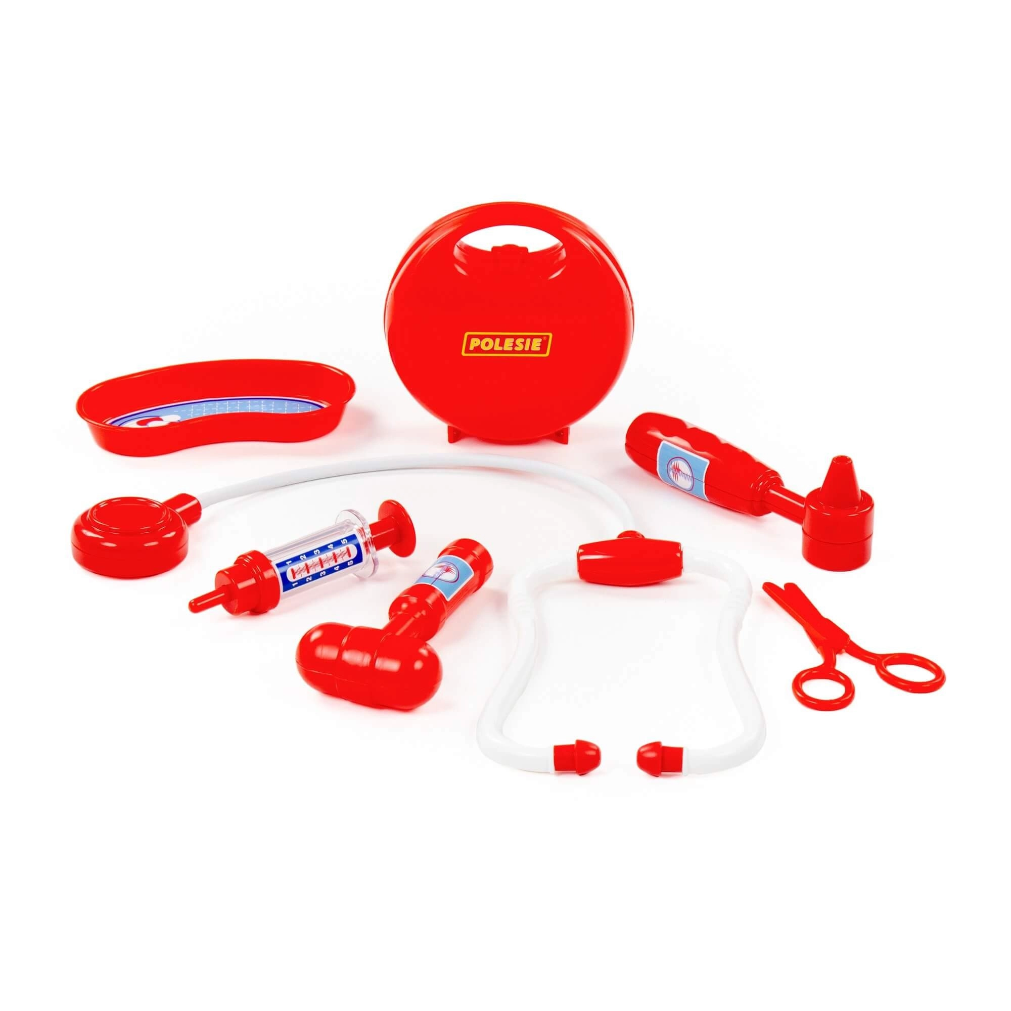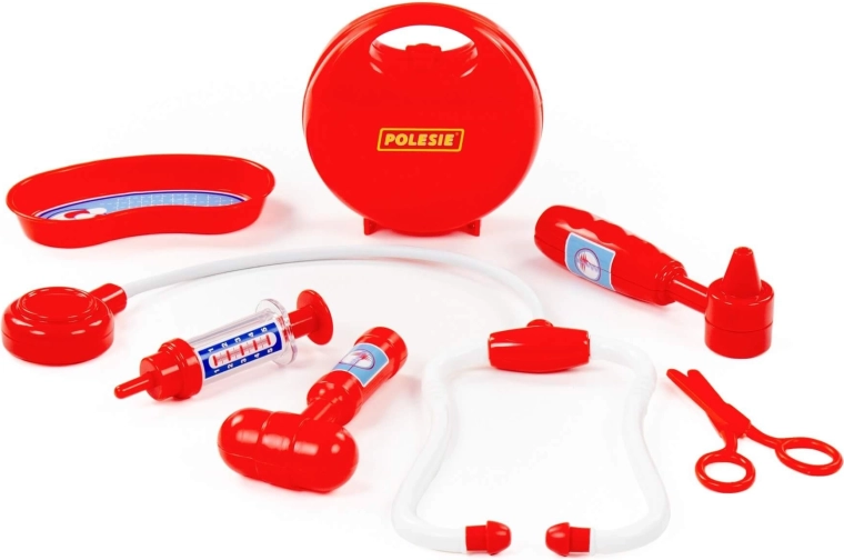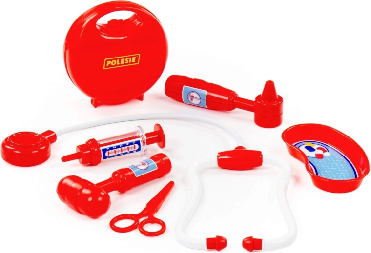 Divertente e sicuro set da dottore per bambini con pratica valigetta, contiene tutto il necessario per i primi “controlli” – stetoscopio, siringa, otoscopio, martelletto riflessi, forbici e vaschetta reniforme. Favorisce il gioco di ruolo professionale, sviluppa la motricità fine e la comunicazione e aiuta i bambini a non temere il medico.