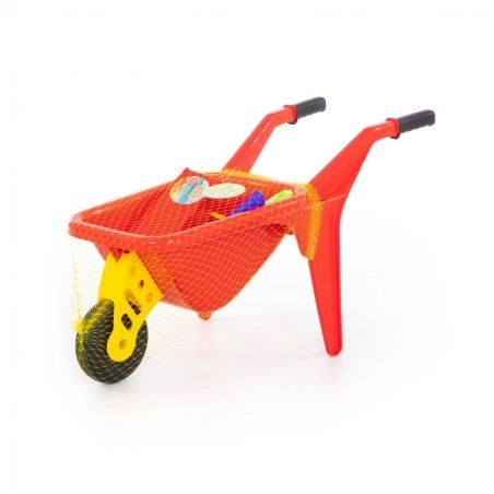 Plastica resistente, impugnature comode e ruota anteriore per spingere e sterzare con facilità. Adatta per sabbia, giardino e cortile.