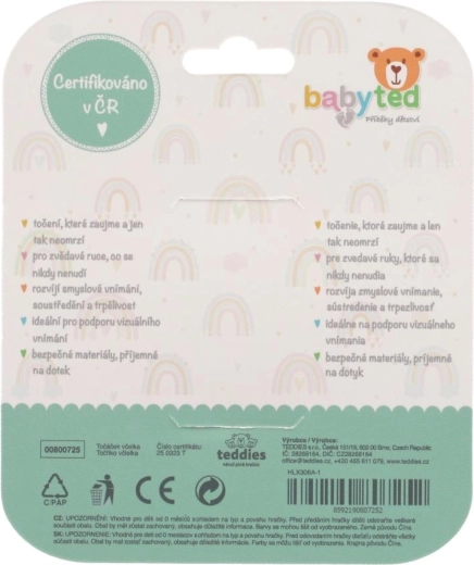La combinazione di morbido silicone e plastica resistente offre ricchi stimoli sensoriali – dalle texture delicate fino alla leggera rotazione e pressione. L’apina è anche un’ottima scelta come massaggiagengive durante la comparsa dei primi dentini. La certificazione nella Repubblica Ceca garantisce qualità e sicurezza comprovate.