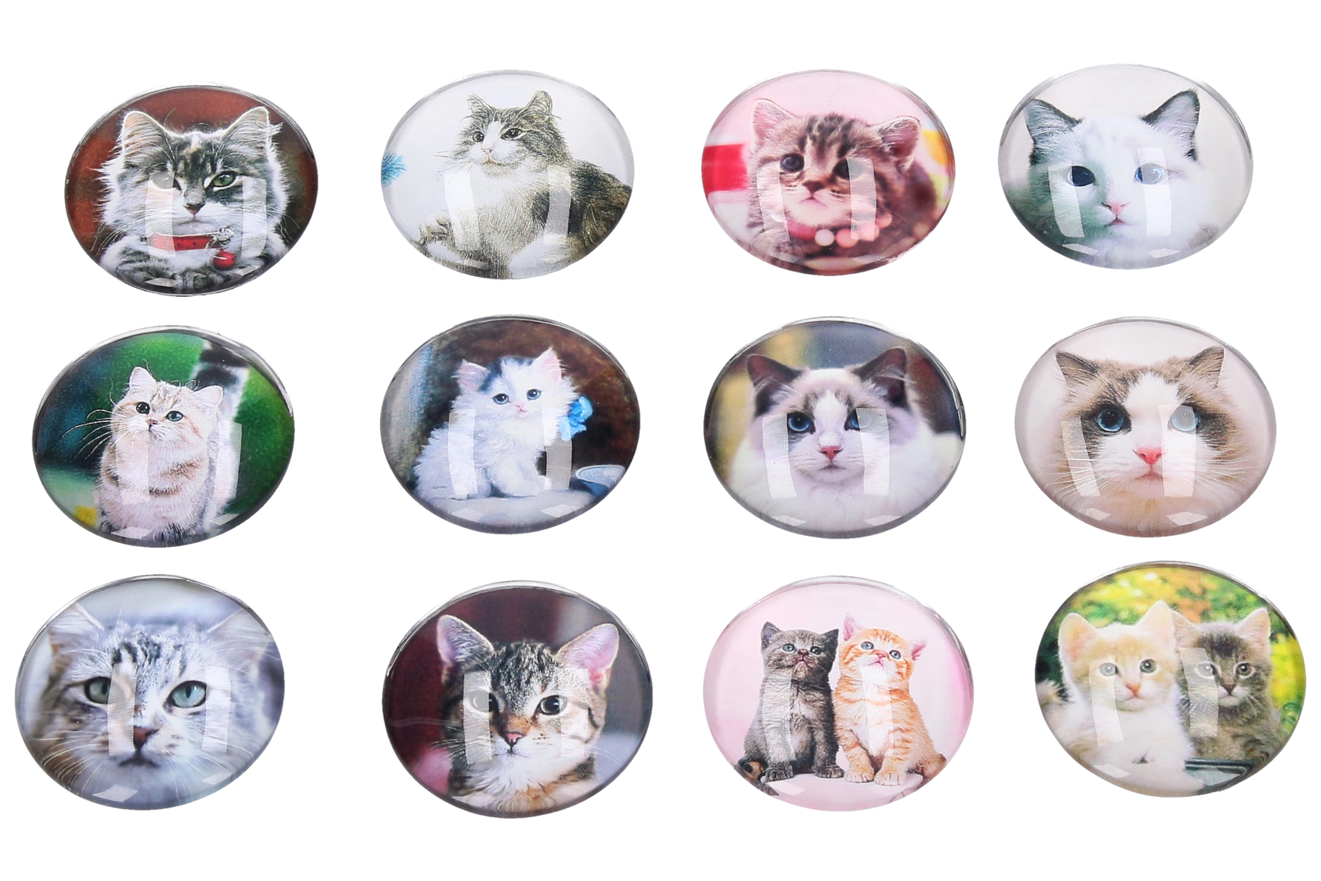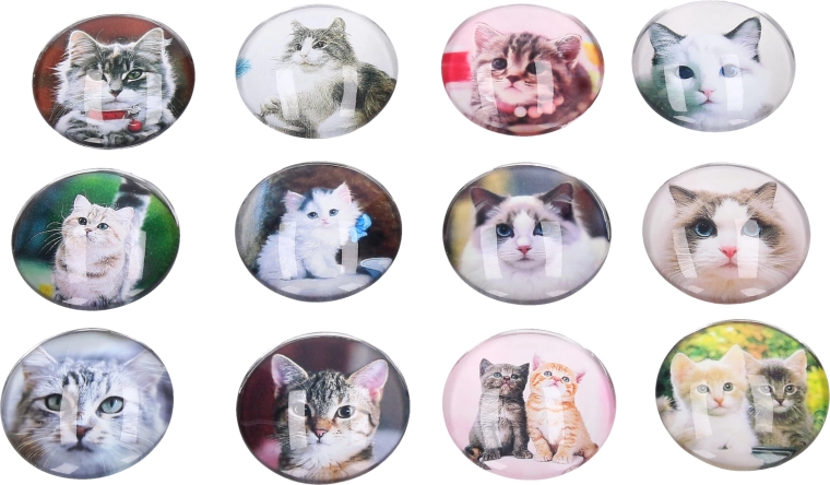 Ravviva la casa o l’ufficio con un accessorio di stile. Questo magnete in vetro con gatto unisce un design accattivante a una funzionalità affidabile. Il diametro di 4 cm è ideale per fissare biglietti, foto o messaggi su frigorifero, lavagna magnetica o superfici metalliche. Ogni pezzo è fornito in un mix di motivi felini, per cui ogni magnete è un piccolo originale.