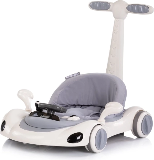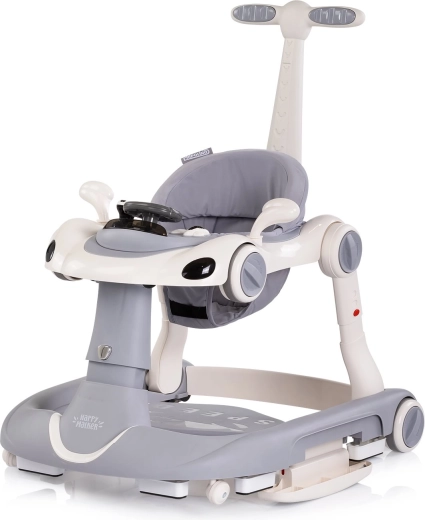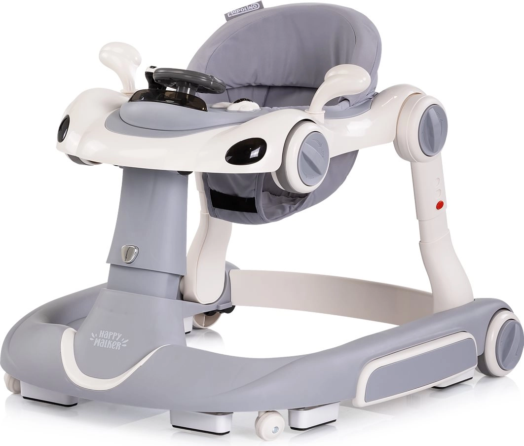 CHIPOLINO Happy Walker 5 in 1 è una soluzione multifunzionale per i bimbi attivi. Fornisce un appoggio stabile per i primi passi, un dondolio rilassante, una modalità saltellante per rinforzare i muscoli e anche la possibilità di spingere o di andare come su un cavalcabile. Il pannello interattivo con luci, pulsanti musicali e giochini mobili stimola lo sviluppo della motricità fine e dei sensi.