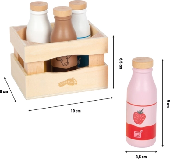 - Cassetta di legno, 4 bottiglie (latte classico, d’avena, alla fragola e al cioccolato)