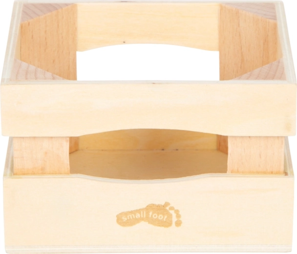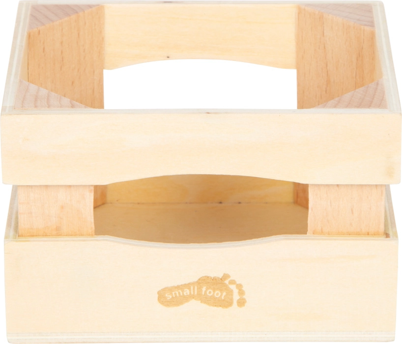 La cassetta con fori per una presa facile funge da spazio di archiviazione ordinato e come accessorio per il negozietto dei bambini. Il set si abbina visivamente alla linea di prodotti “fresh” e può essere facilmente combinato con altri alimenti in legno per un gioco di cucina e servizio ancora più vario.