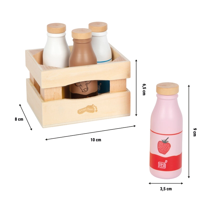 Offri ai bambini ancora più divertimento nel gioco del negozio e della cucina con questa robusta cassetta di legno con quattro bottiglie di bevande al latte. Il set include latte classico, latte d’avena, latte alla fragola e latte al cioccolato. Grazie ai colori vivaci e ai simboli semplici, le varietà sono facilmente riconoscibili anche dai più piccoli. La struttura in legno resistente e la pratica cassetta facilitano il riordino e mantengono l’ordine durante il gioco.