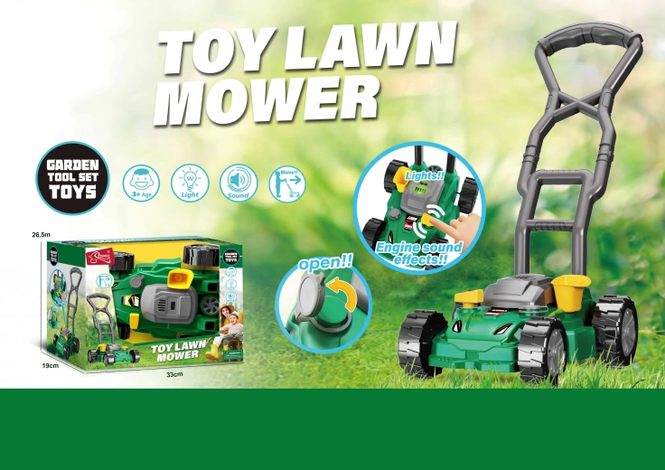 Divertente tosaerba per bambini con effetti luminosi e sonori che farà felice ogni piccolo giardiniere. Un pratico giocattolo dalle dimensioni 30 × 25,4 × 50 cm che stimola fantasia e gioco attivo in giardino. Funziona con 2× batterie AA (non incluse).