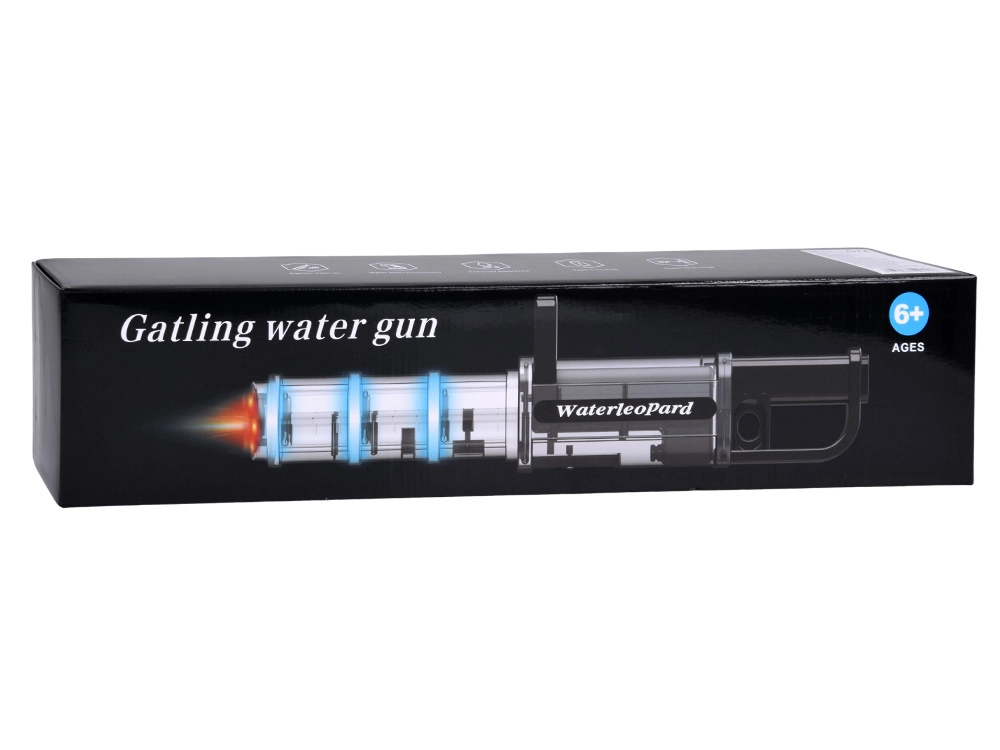 La pistola ad acqua elettrica offre azione rapida senza sforzo: basta riempire, premere il grilletto e il divertimento inizia. La modalità automatica assicura un getto fluido e continuo fino a circa 8 metri; la canna trasparente retroilluminata con LED dà un effetto wow alle battaglie serali.
