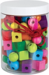 Maxiperle in legno colorato con cordino da infilare 92 pezzi