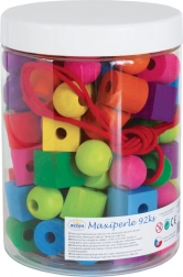 Le maxiperle in legno colorato sono un accessorio ideale per bambini dai 3 anni, che vogliono esercitarsi nella loro destrezza e divertirsi al tempo stesso. Questo set contiene 92 pezzi di varie forme e colori che possono essere infilati sul resistente cordino incluso.