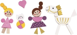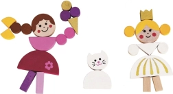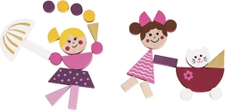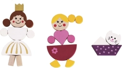 I colorati pezzi in legno con magnete si assemblano con facilità per creare personaggi, animaletti e castelli. I bambini daranno vita a fiabe e scenari secondo la loro fantasia.