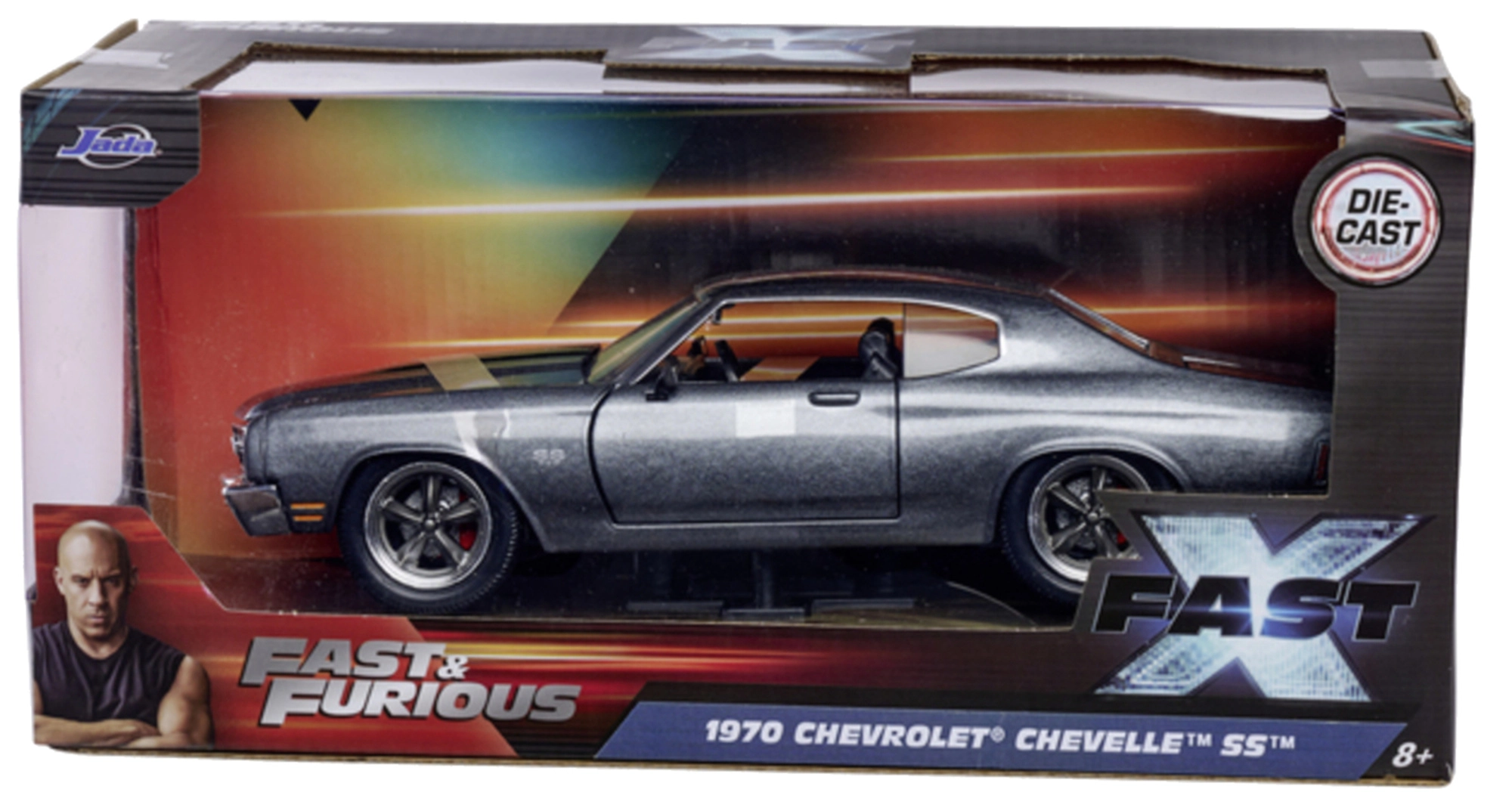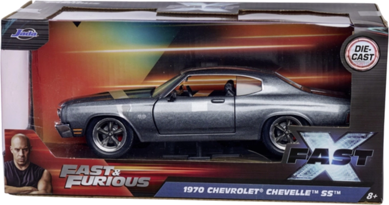 Modello da collezione finemente dettagliato del marchio Jada Toys ispirato alla saga FAST & FURIOUS. Presenta carrozzeria in metallo, porte e bagagliaio apribili e proporzioni fedeli dell’iconica 1970 Chevrolet Chevelle SS con lunghezza di 19 cm – ideale per i fan dei film e come decorazione di stile.