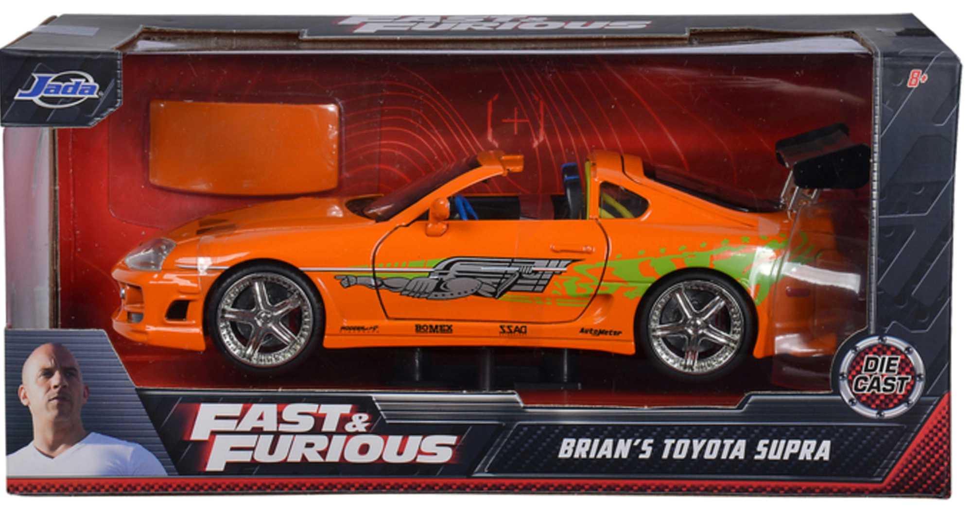 Questo modello da collezione entusiasmerà ogni appassionato di film d’azione e corse di strada. La fedele replica della famosa Toyota Supra della serie Fast & Furious fa un’ottima figura in vetrina e offre tanto divertimento nel rivivere le scene preferite.