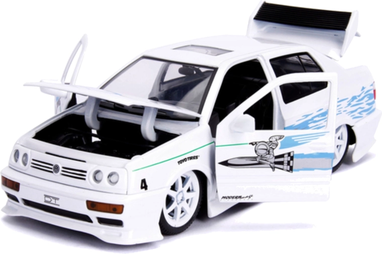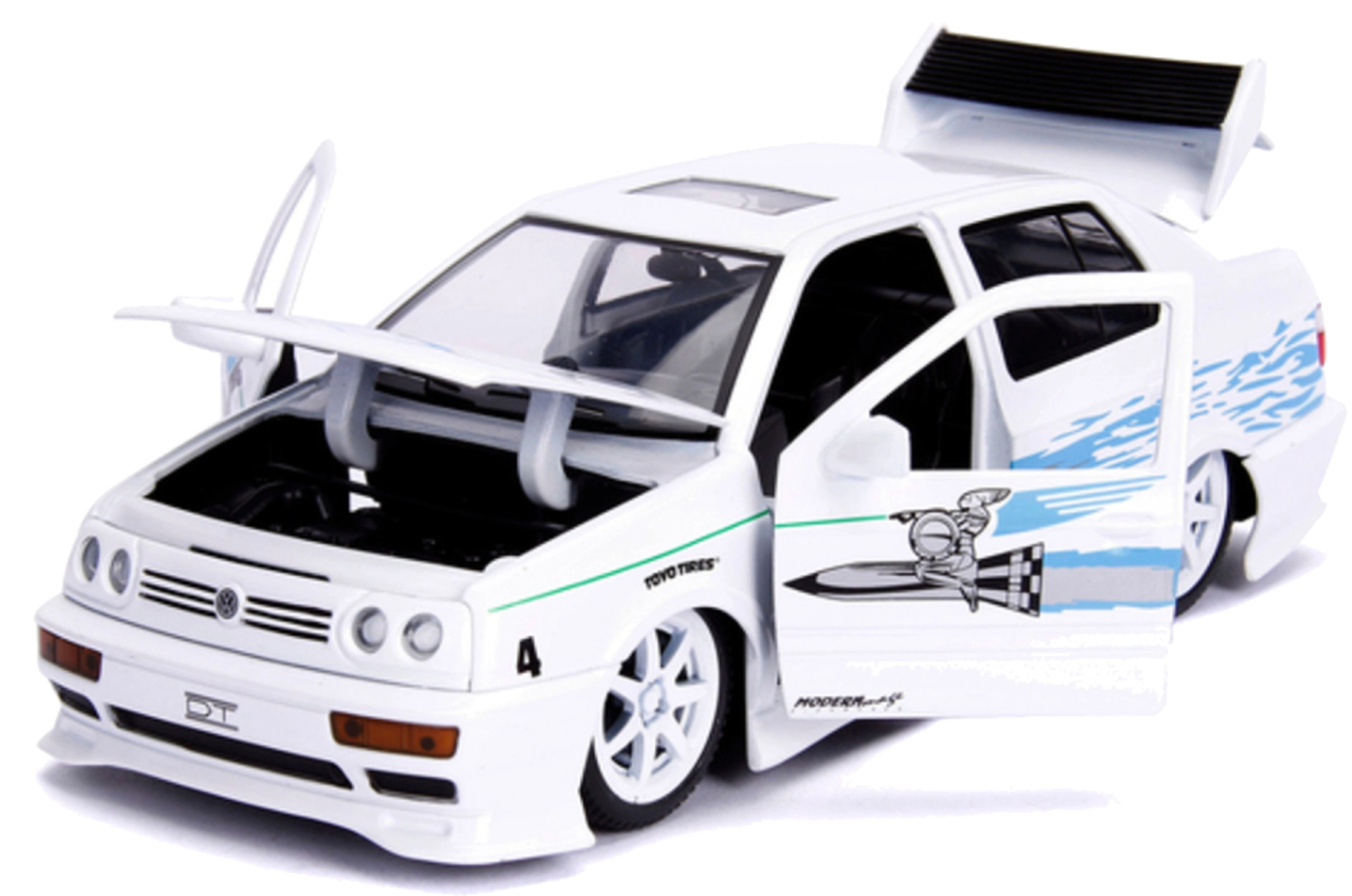 Questo modello della Volkswagen Jetta, realizzato nei minimi dettagli e tratto dalla serie cinematografica FAST & FURIOUS, conquisterà ogni amante delle auto veloci e dei classici del cinema. Grazie alla robusta carrozzeria in metallo di colore bianco e agli elementi apribili, appare estremamente realistico e risalta perfettamente in qualsiasi collezione.