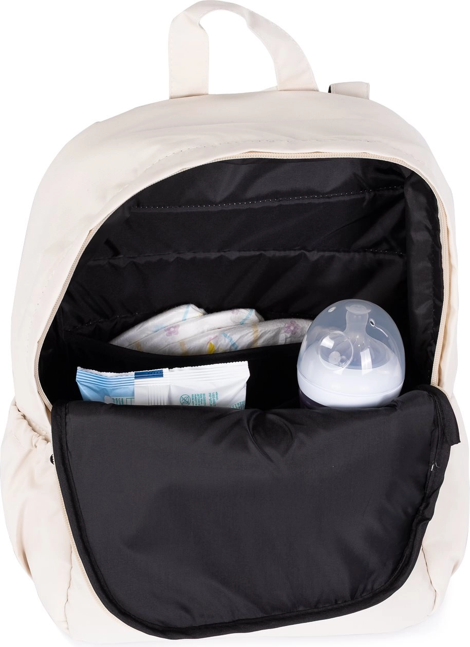 Scomparto principale ad alta capienza con più tasche per contenere pannolini, biberon, salviette e vestiti, mantenendo tutto in perfetto ordine al proprio posto.