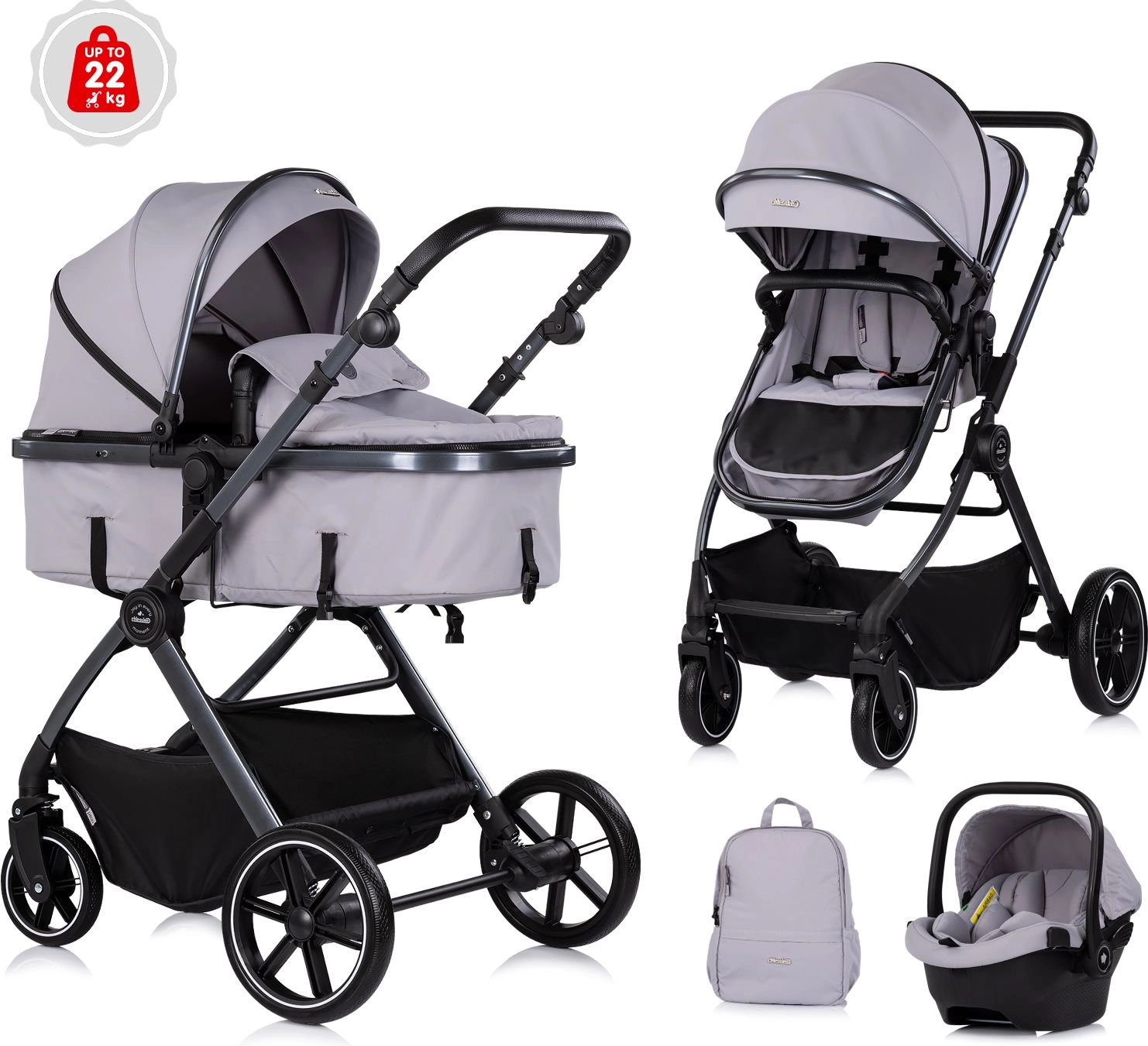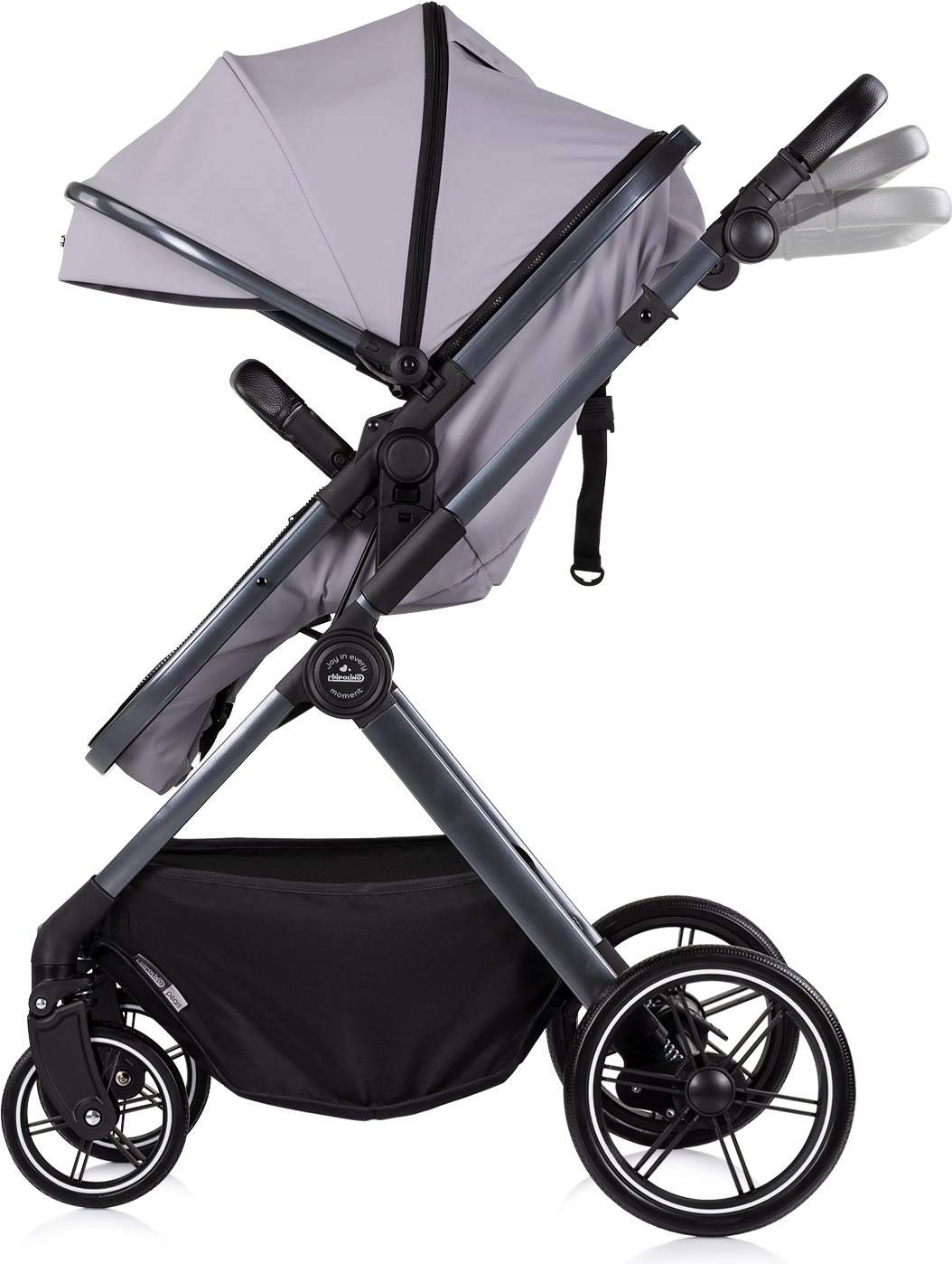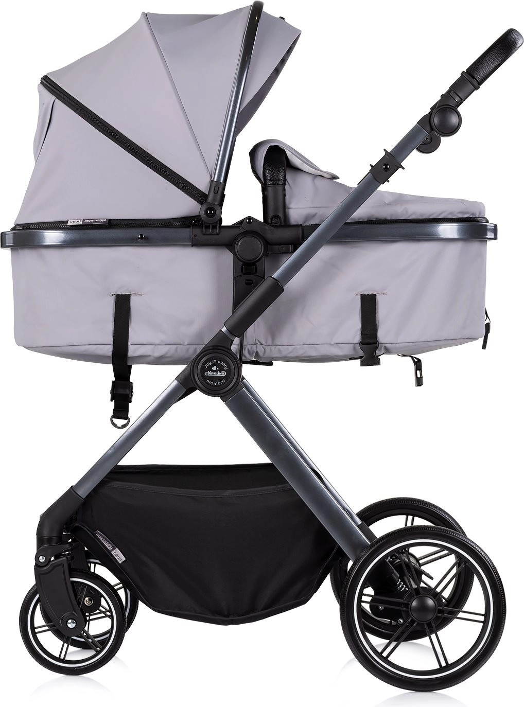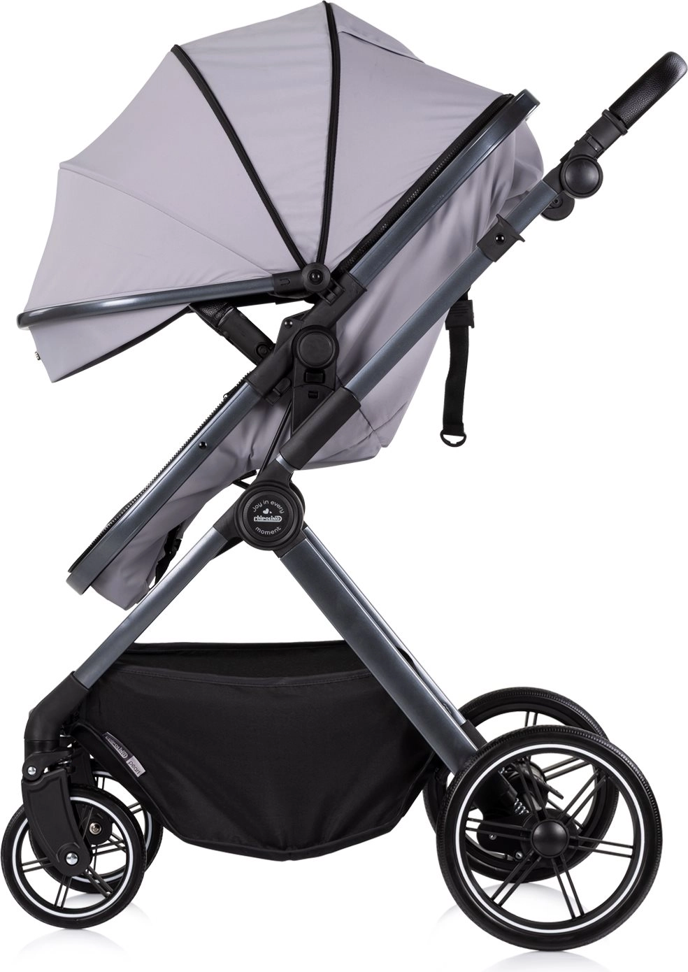 Chipolino Pearl Platinum è un passeggino combinato moderno progettato per il massimo comfort e sicurezza fin dalla nascita. Grazie alla struttura intelligente, trasformi facilmente la seduta sportiva in una navicella profonda, mentre la grande capottina estensibile con finestrella offre protezione dal sole e consente di controllare il bambino con discrezione.