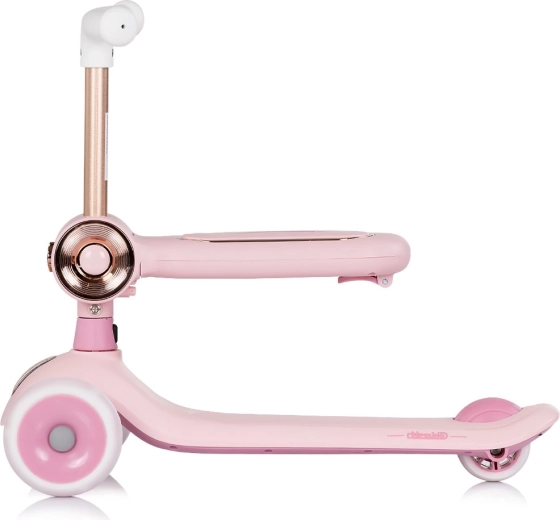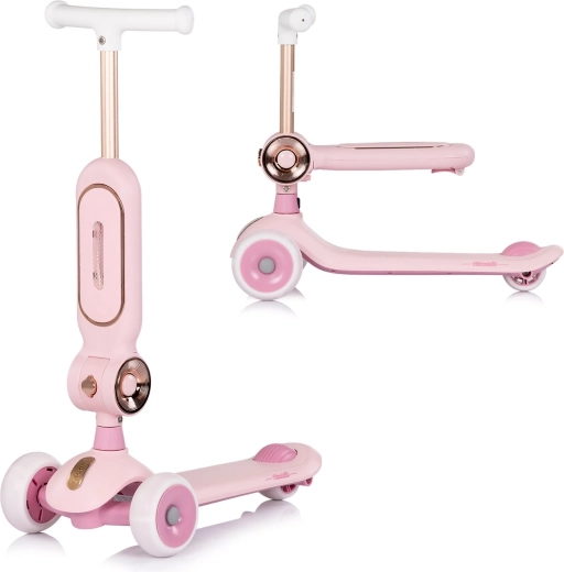 Il monopattino 2 in 1 CHIPOLINO Bloomi in colore rosa combina monopattino e cavalcabile per la massima versatilità. Offre una struttura a tre ruote stabile, ruote in PU luminose, una pedana ampia antiscivolo e un freno posteriore a pedale per una guida sicura e divertente. Il sedile offre supporto ai più piccoli e favorisce lo sviluppo dell’equilibrio e della coordinazione.
