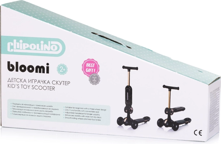 Il monopattino/cavalcabile CHIPOLINO Bloomi 2 in 1 è la scelta ideale per le prime uscite dei vostri bambini. Grazie al sedile, i più piccoli possono spingersi da seduti e passare gradualmente alla guida autonoma in piedi. La struttura a tre ruote garantisce alta stabilità, mentre la pedana ampia antiscivolo e il freno posteriore a pedale offrono sicurezza a ogni spinta.