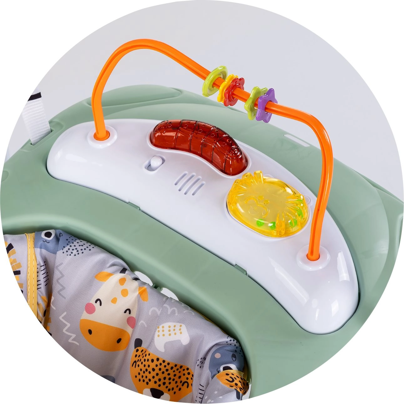 Scoprite uno saltarello divertente e sicuro per bebè che unisce movimento attivo a giochi interattivi, luci e musica. Il sedile comodo e regolabile in altezza cresce con il bambino, mentre la struttura stabile e il rispetto delle norme di sicurezza europee assicurano la tranquillità dei genitori.