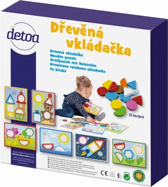L’inserto in legno DETOA è un gioco didattico ideale che sostiene lo sviluppo naturale del bambino. I bambini allenano motricità fine, coordinazione occhio–mano e pensiero logico cercando la forma giusta per ogni apertura. Le pietrine colorate e 6 schede di gioco mantengono alta l’attenzione e rendono l’apprendimento divertente.
