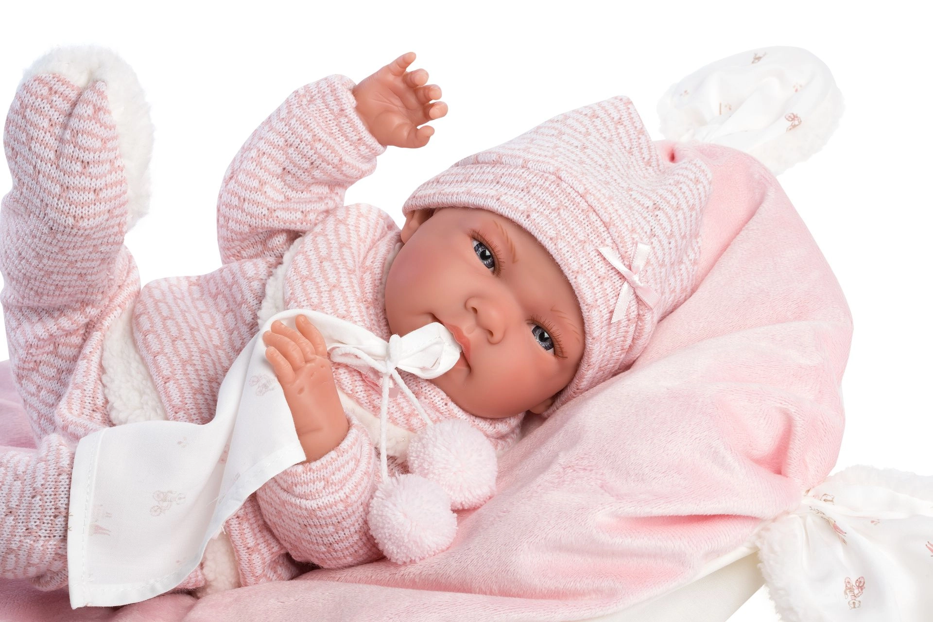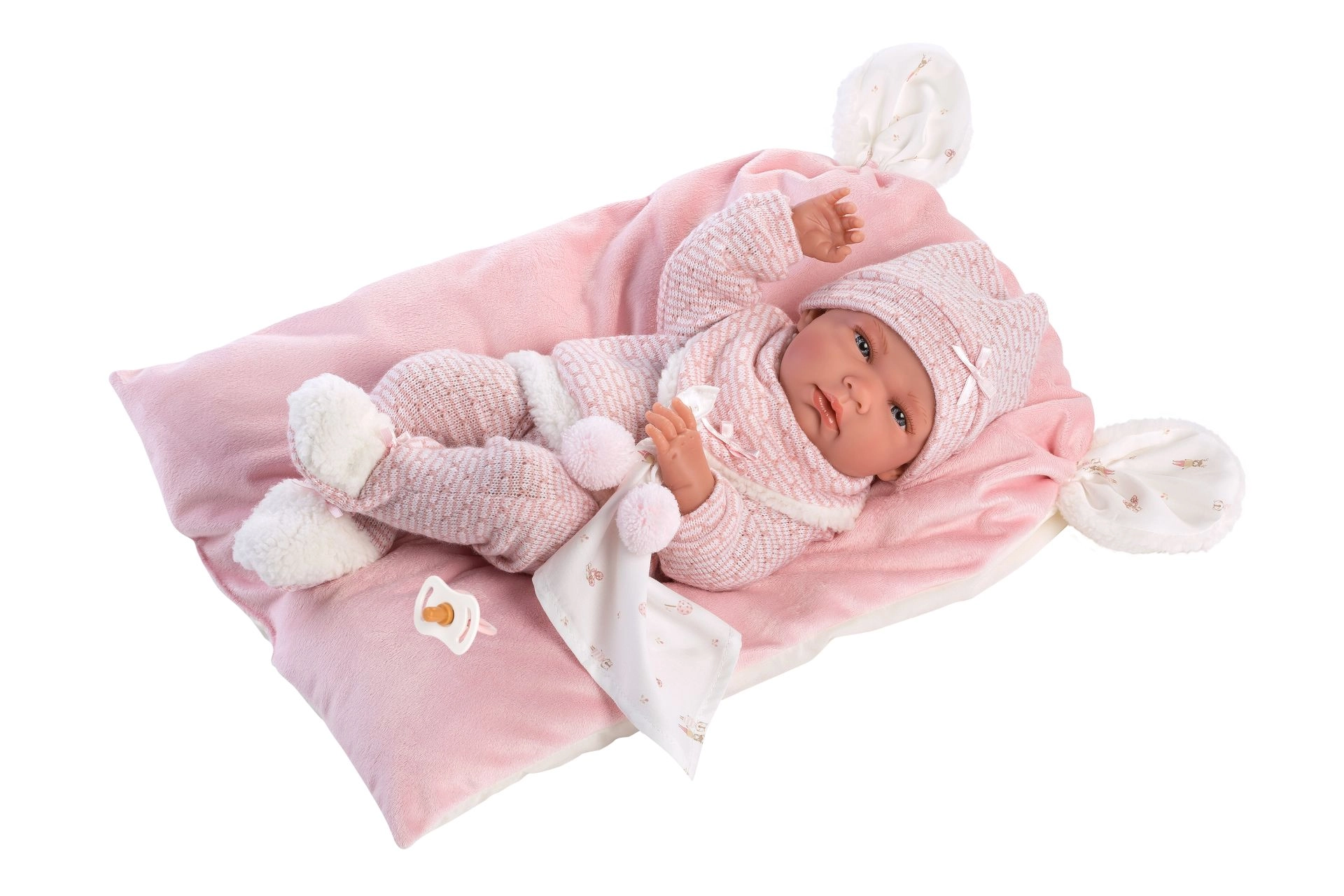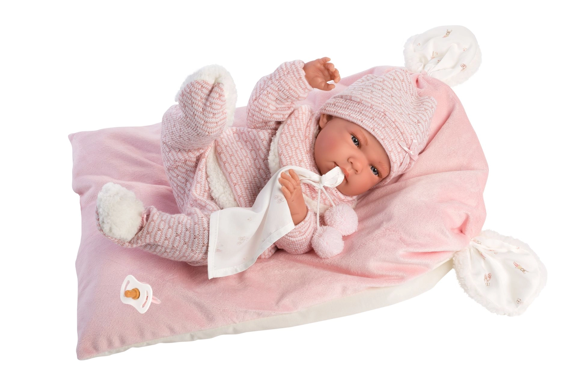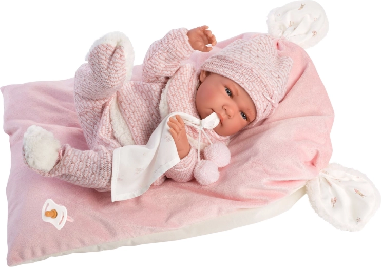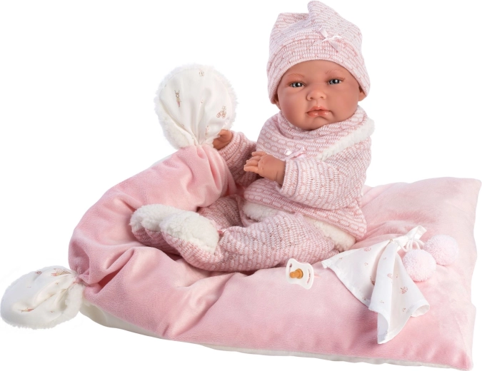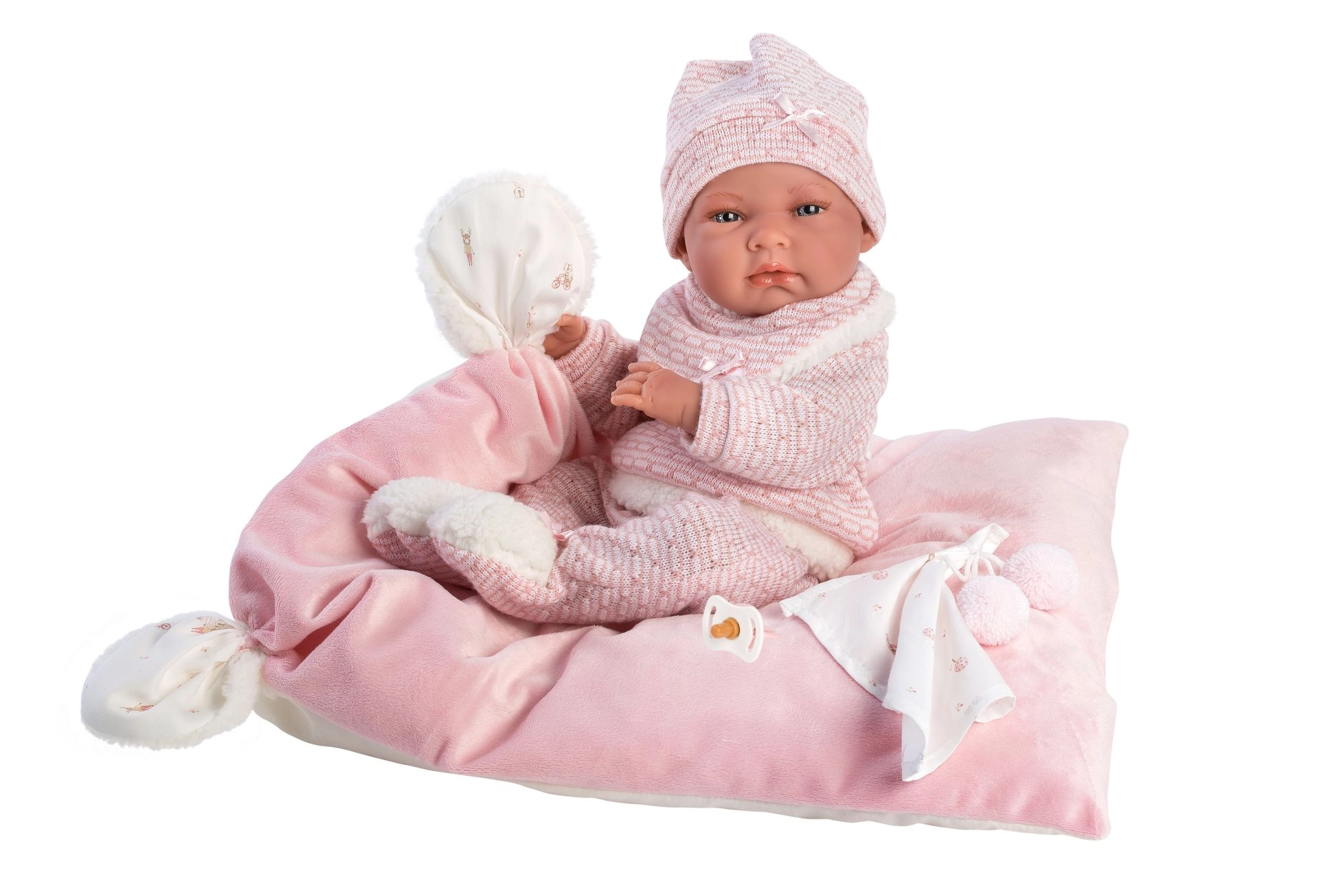 Un set di abbigliamento elegante e caldo per bambola che offre tutto ciò di cui i piccoli caregiver hanno bisogno: capi morbidi lavorati a maglia con pelliccia sintetica soffice, un tenero doudou con pon pon e un cuscinetto decorativo che funge anche da comodo tappetino. Tutto progettato per le bambole Llorens NEW BORN di 40–42 cm.
