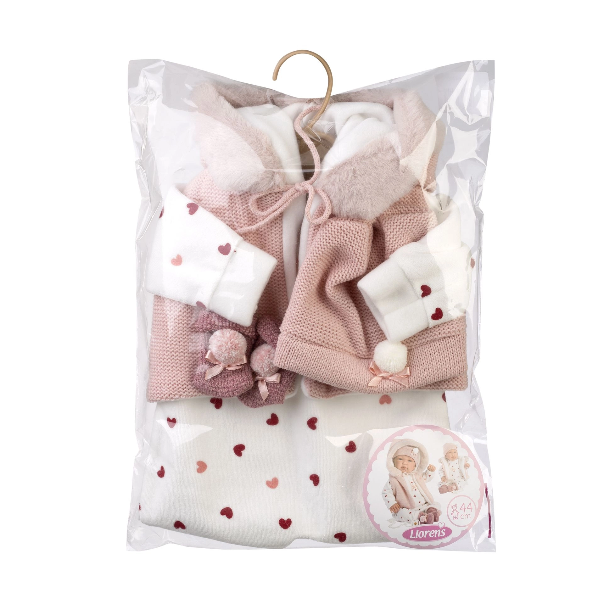 Il set è progettato per bambole di 43–45 cm e si adatta perfettamente ai modelli Llorens più amati. Grazie alla pratica confezione con appendino, riordino e organizzazione del guardaroba sono semplici e ordinati.