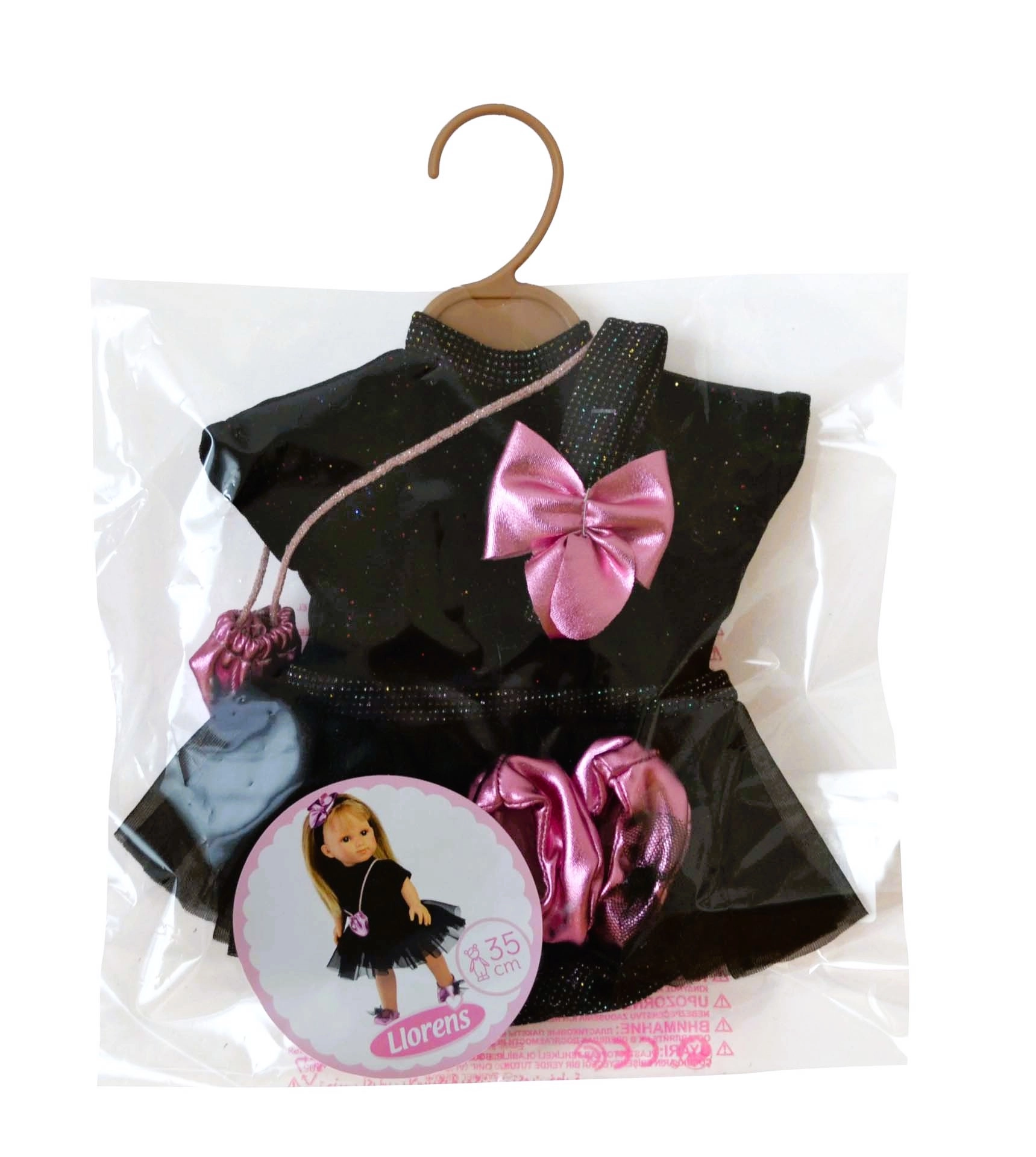 Regala alla tua bambola un outfit alla moda con questo set da 5 pezzi per bambole Llorens 35 cm. Realizzato a mano in Spagna, include 3 capi di abbigliamento, un elastico per capelli con fiocco e una borsetta. Lavorazione di qualità, facile da indossare e ideale per il gioco creativo dai 3 anni in su.