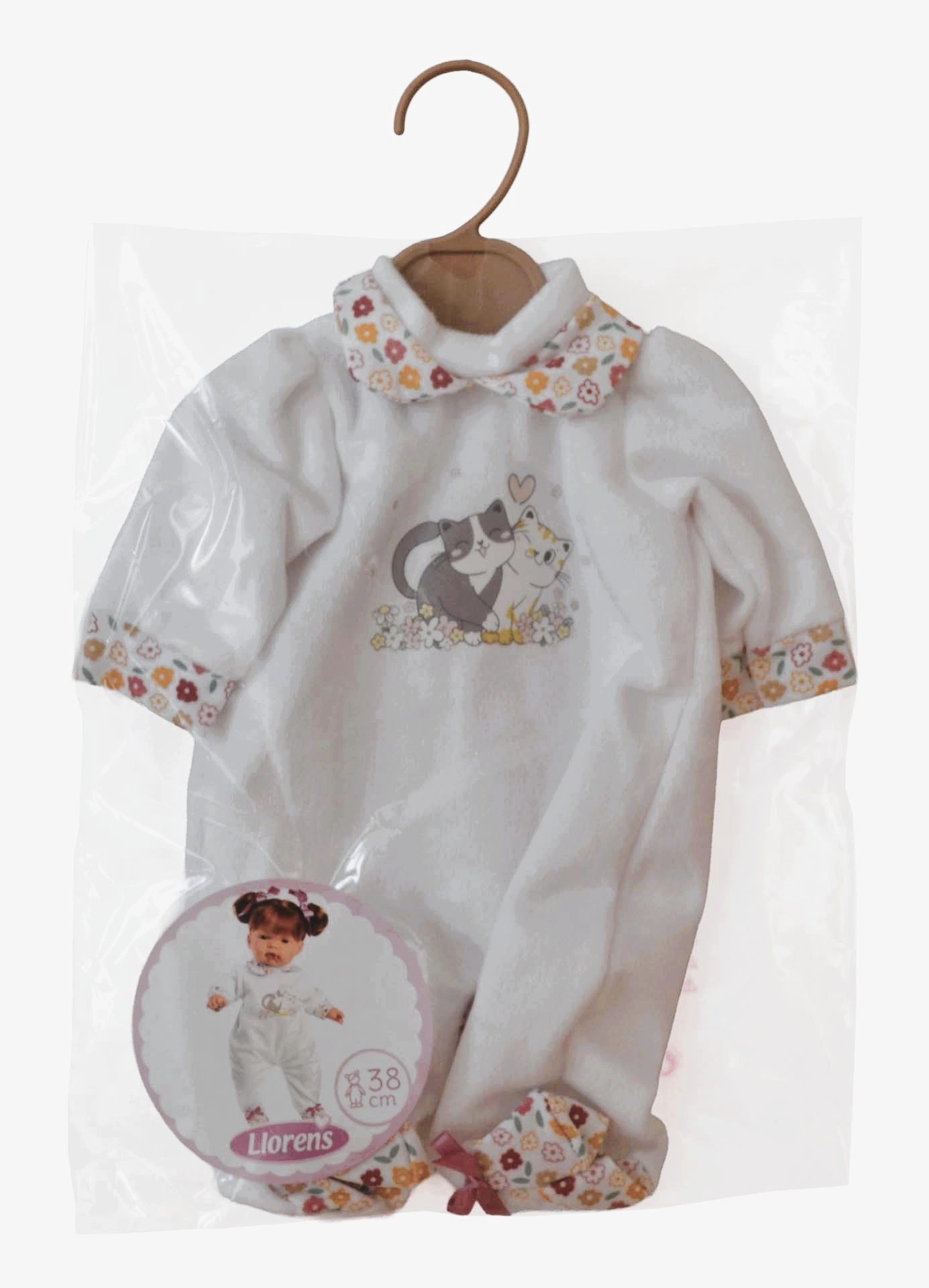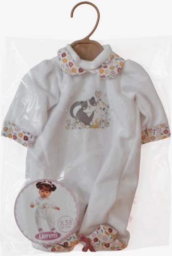 Elegante tutina per bambola da 38 cm del marchio LLORENS, realizzata a mano in Spagna. Si adatta perfettamente alle bambole di questa misura ed è ideale per il gioco creativo e il cambio d'abito. Fornita in custodia di plastica con appendino. Adatta ai bambini da 3 anni.