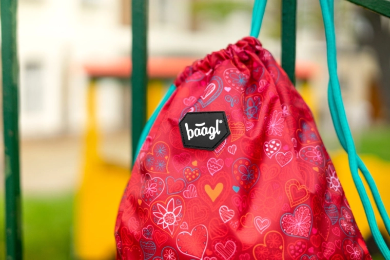 La sacca per ginnastica con cuoricini unisce un design vivace a una lavorazione pratica. La struttura leggera entra facilmente nello zaino e la superficie lavabile semplifica la manutenzione dopo sport o attività artistiche.