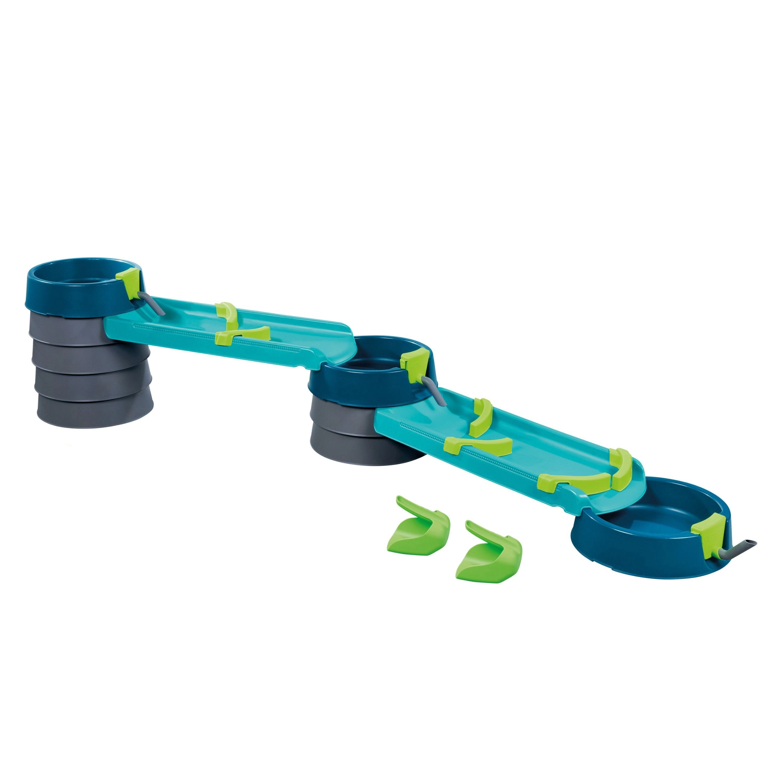 Il sistema modulare in plastica resistente ai raggi UV è facile da montare, riconfigurare e pulire. Il set è ideale per bambini dai 3 anni e sviluppa creatività, pensiero logico e comprensione delle basi della fisica giocando all’aria aperta.