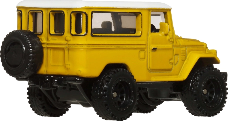 Questo modello accuratamente realizzato di Toyota Land Cruiser FJ43 conquisterà gli amanti dei classici fuoristrada e i collezionisti della serie Hot Wheels Premium Boulevard. La carrozzeria gialla con tetto bianco, la griglia realistica, la ruota di scorta e le proporzioni fedeli in scala 1:64 esaltano l’aspetto autentico della leggenda off-road.