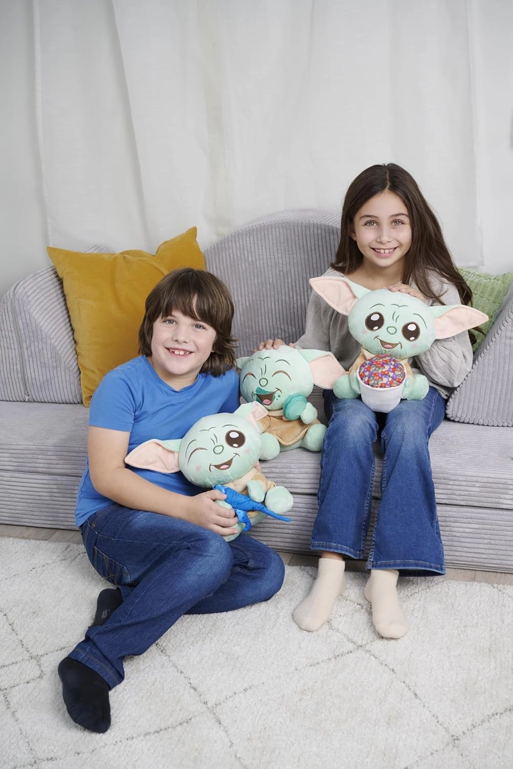 Il personaggio amatissimo Grogu, noto anche come “Baby Yoda”, arriva in una versione adorabile con una golosità in mano – un richiamo alle scene indimenticabili della serie The Mandalorian. Il peluche, in materiale morbido e piacevole, è perfetto per coccole, gioco e collezione.