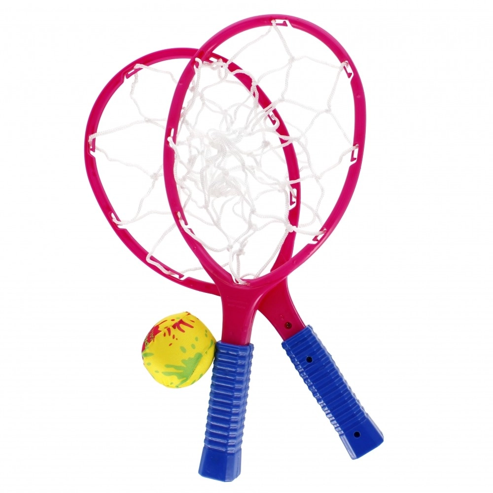 Racchettoni in plastica con reticella e impugnatura testurizzata che facilitano la presa ai bambini e migliorano la precisione durante il gioco.